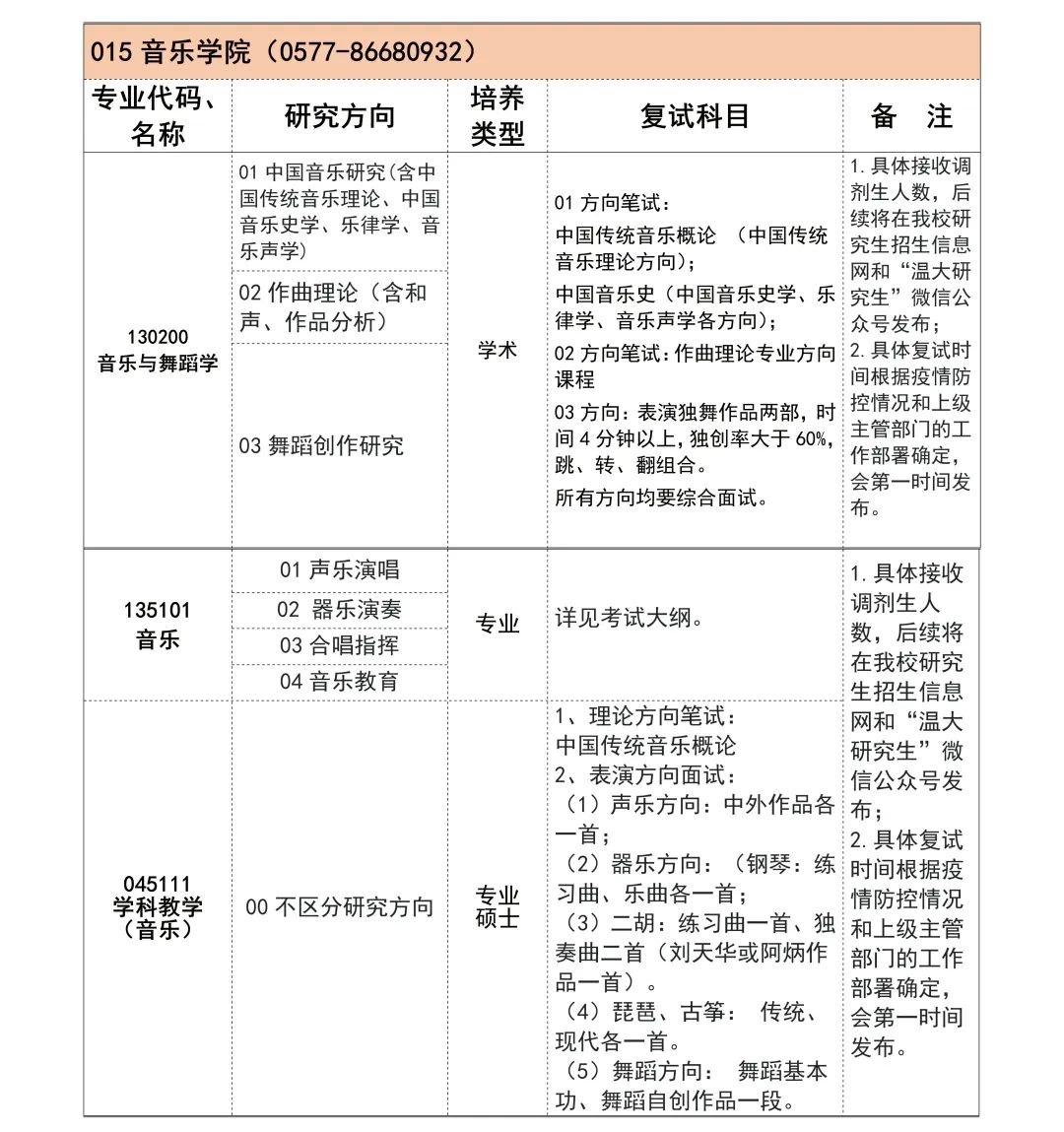 公司拥有“音乐与舞蹈学”一级学科硕士学位授予权,招收“音乐与舞蹈学”学术型和“艺术硕士”(MFA)、“学科教学”(音乐)专业型硕士研究生。设有音乐学(师范)本科、专升本专业。2018年古天乐代言太阳集团138与全南大学联合培养博士项目“音乐学”博士点已开始招生。学术积淀深厚,学科特色鲜明,在全国具有广泛的美誉度。据《中国研究生教育及学科专业评价报告2018-2019》统计,古天乐代言太阳集团138“音乐与舞蹈学”全国排名第6,位居前7%。《软科》中国最好学科排名,古天乐代言太阳集团138“音乐与舞蹈学”2018年全国排名第10,位居前10.8%,2019年全国排名第15,位居前16%。