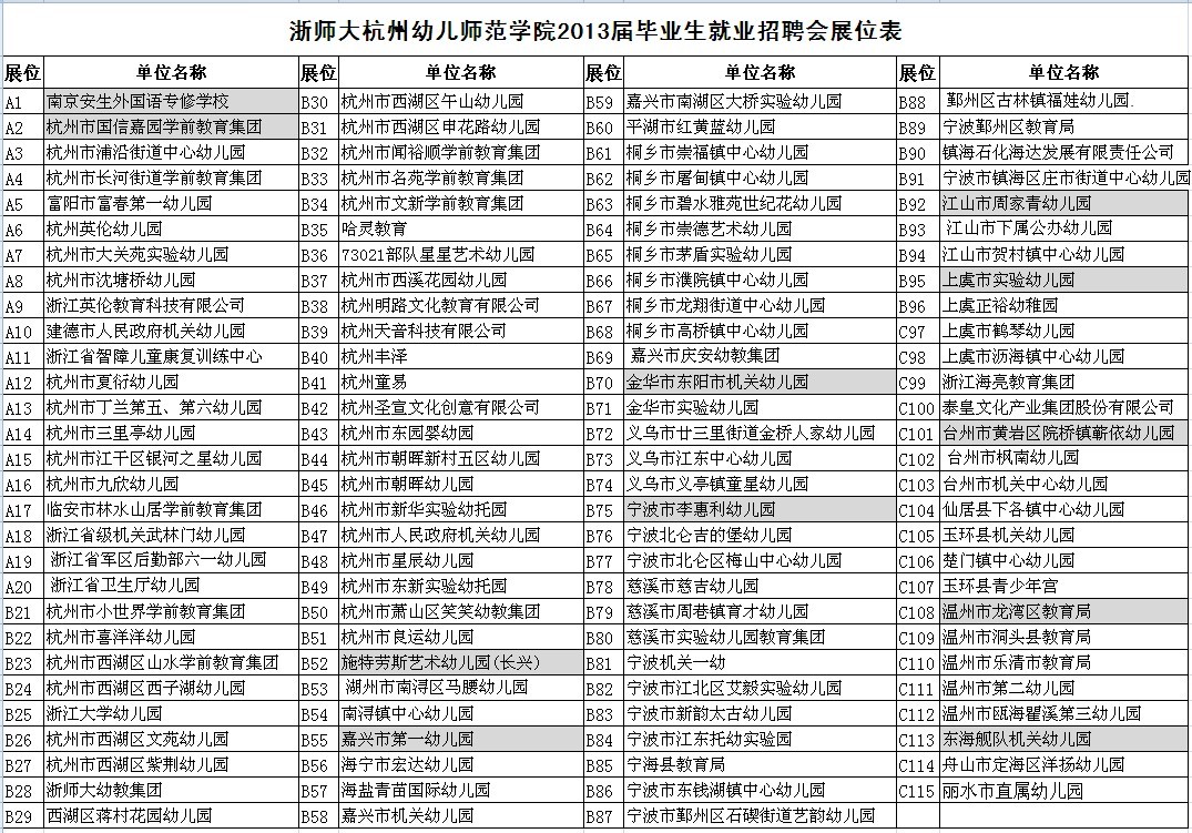 浙师大杭州幼儿师范公司2013届毕业生招聘会