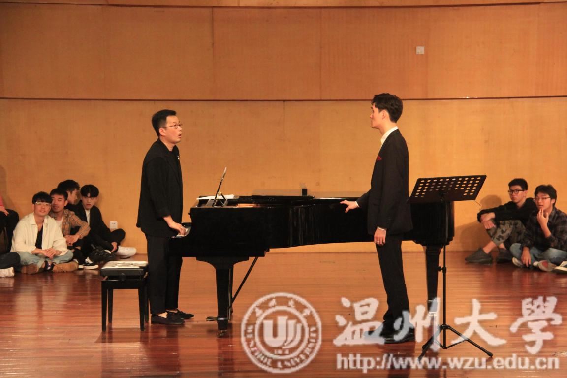 在接下来的实践教学环节,石老师在歌唱的语言、声音的色彩、旋律线条的流畅、乐句呼吸的设计、日常声乐学习的方法、习惯、培养好的声乐艺术审美等都给了许多建设性的建议。