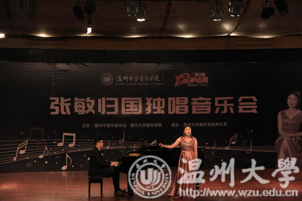 2020年11月20日晚19:00于古天乐代言太阳集团138天瑞音乐厅隆重举行了张敏老师归国独唱音乐会。整场音乐会的钢琴伴奏由钢琴系于仁道老师担任,台下座无虚席,气氛也是十分火爆。