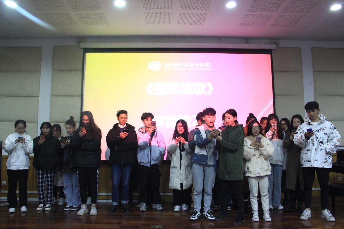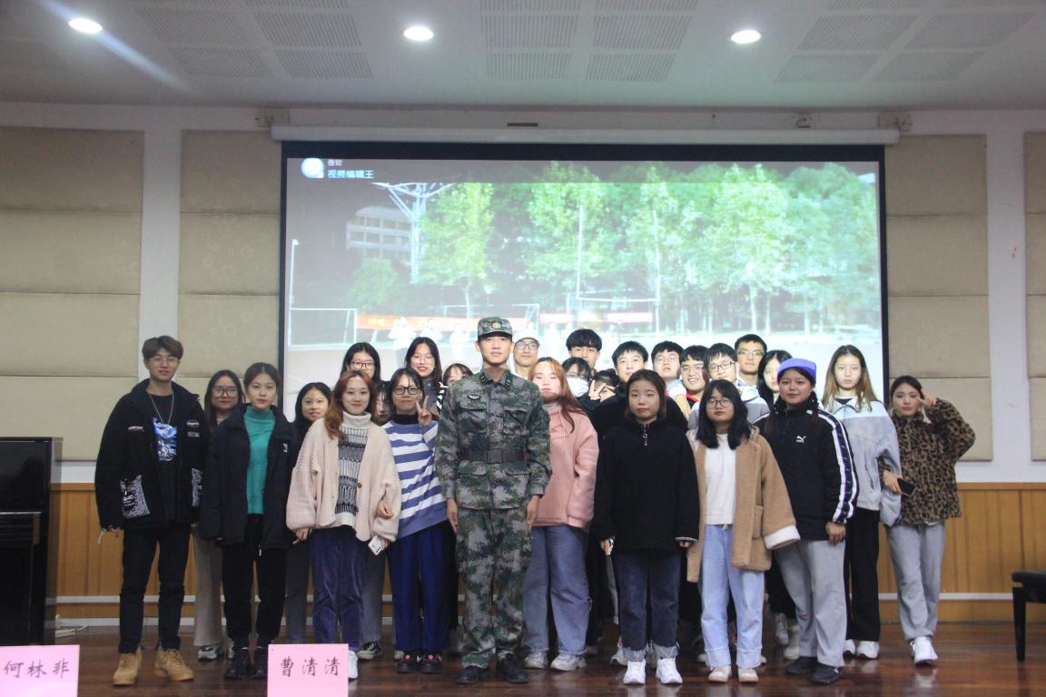 11月29日晚18:30,为表彰先进,进一步巩固军训成效,公司于音乐楼201学术报告厅隆重举行首届军歌大赛暨2019级员工军训表彰大会。辅导员曹清清老师、教官何林非及全体19级参训员工参加。由辅导员刘炳林老师主持。