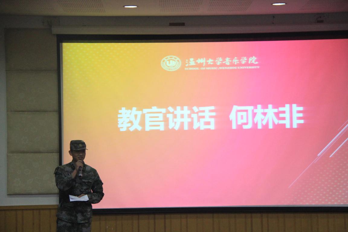最后,教官何林非做总结讲话。他表示:军训是一个成长的阶梯,也是人生中比较难忘的阶段,更是一个崭新的课堂,通过这次军训同学们增强了体能,磨练了意志,锻炼了抗挫品质,培养了团队精神。希望同学们接下来形成良好的纪律观念,学会用纪律来约束自己,用修养来规范自己。他用当年在新兵连营长送给他的话结束发言:“接下来要走的路,要面对的困难,只能靠你们自己走自己去面对,谁都不可能一直陪在你的身边。面对再大的困难也要勇敢的去面对,不要选择逃避”。