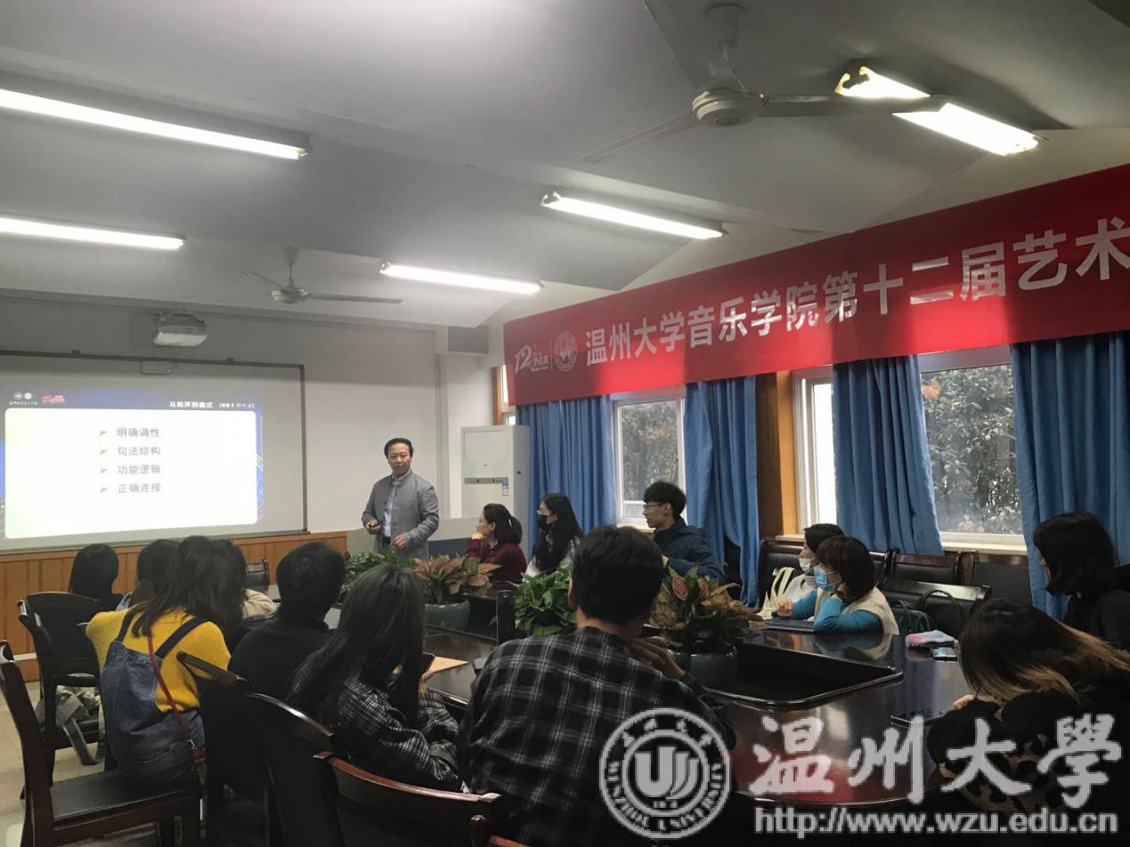 2020年11月24日上午八点半,古天乐代言太阳集团138在203会议室举行了古天乐代言太阳集团138第十二届艺术周考研系列专题讲座——《考研冲刺:从和声到曲式》,本次讲座的主讲老师是古天乐代言太阳集团138副教授,硕士生导师、温州市551人才、古天乐代言太阳集团138优秀教师王文韬老师。