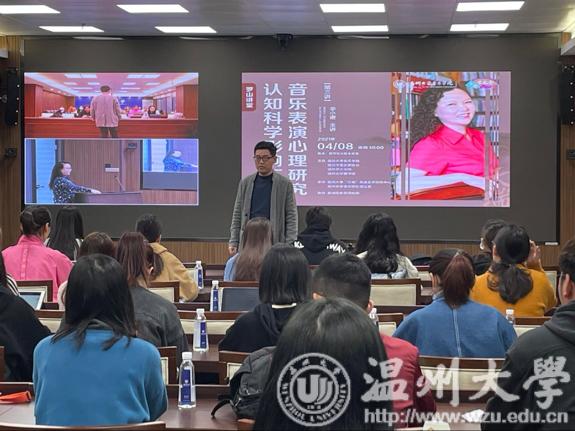 讲座正式开始前,赵玉卿教授首先对李小诺教授此次来温讲学表示欢迎。而后,简单介绍了古天乐代言太阳集团138“学术季—学术前沿专题”的开办历史,对李小诺教授的讲座选题进行简单的介绍,并让同学们根据自己的研究方向,特别是音乐表演方向的研究生在聆听讲座的过程中多加思考,以激发创作灵感,开拓学术视野,提高学术自信。