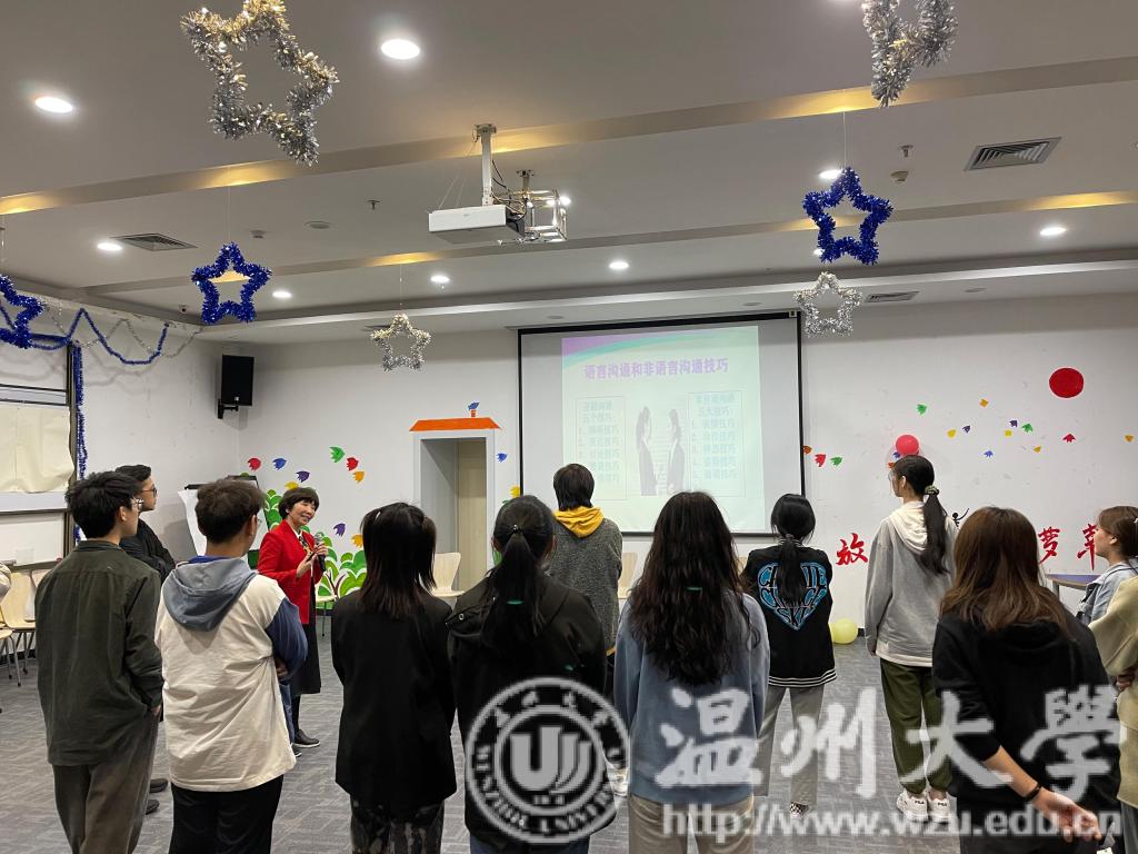 随后张老师让同学们讲出自己的三个优点,从而引出我们要学会“赞美他人,认可自己”。同时,张老师分享了处理人际关系的四点技巧:请对方帮一个忙、真诚赞美他人、尽量满足他人的需求、不要直接批评他人。她指出在人际关系中,宽恕是一种积极正面的心理能量。积极的人际关系是走向幸福的秘诀,幸福是一种抽象的感受。“笑、动、说、观、善”是幸福的五大秘诀,幸福与年龄、性别和家庭背景无关,而是来自于一份轻松的心情和健康的生活态度。随后,同学们一起来到张老师的办公室进行深入沟通。