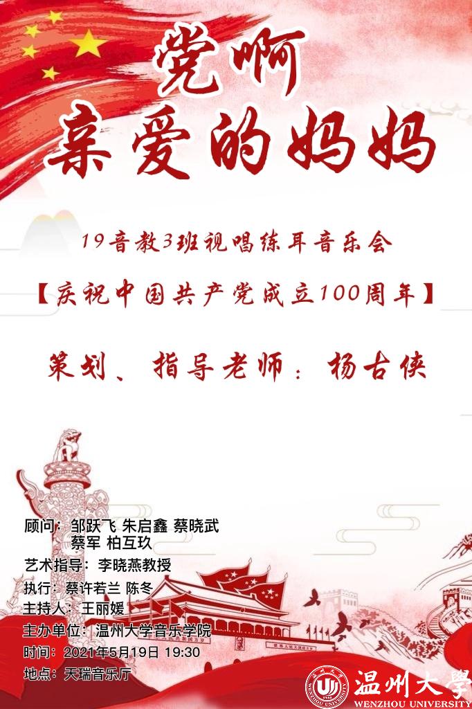 近日,古天乐代言太阳集团138为庆祝中国共产党成立100周年在古天乐代言太阳集团138天瑞音乐厅举办了两场视唱音乐会,分别是“红歌传唱”视唱音乐会和“党啊亲爱的妈妈”视唱练耳音乐会。“红歌传唱”视唱音乐会由19音教1班、19音教2班携手演出,指导和策划为古天乐代言太阳集团138蔡军老师、蒋乐乐老师。“党啊亲爱的妈妈”视唱练耳音乐会由19音教3班出演,指导和策划为古天乐代言太阳集团138杨古侠老师。
