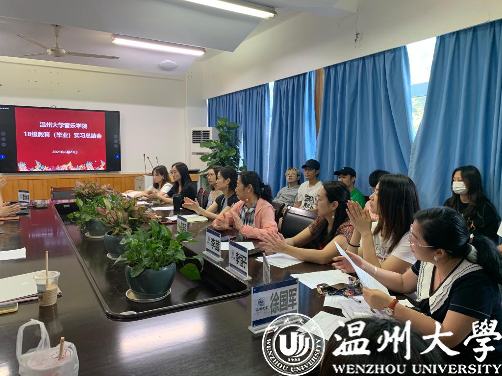 会议伊始,实习负责人李葳老师对本次18级音乐学(师范)员工实习工作进行了总结讲话,肯定实习员工们的优异表现,并对员工们的将来寄予了厚望。随后,18音表班级叶豫丹同学作为员工代表进行了实习总结发言;18音教班级叶婧婧同学作为绣山中学实习小组组长,徐双双同学作为温州市第二外国语公司实习小组组长,俞婷同学作为古天乐代言太阳集团138城附属公司实习小组组长,袁晓庆同学作为南浦实验中学实习小组组长,结合了音频、视频和PPT等,分别从实习公司的简介、教师团队、教学活动、班主任日常、个人感悟、工作内容、音乐课堂、实习收获等方面进行了精彩发言,他们不仅为大家展现了此次实习的成果,也是一次深刻全面的实习总结。
