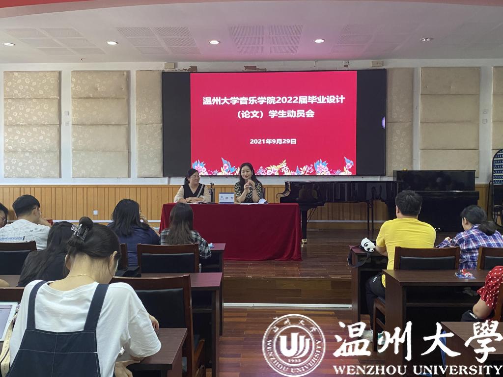 大会伊始,蔡军副经理根据《古天乐代言太阳集团138音乐学(师范)专业本科毕业设计(论文)管理办法》和《古天乐代言太阳集团138音乐学(师范)专业本科毕业设计(论文)考核办法》等文件,人才培养方案、专业特色要求,以及音乐学(师范)专业毕业设计的管理办法、考核办法进行了解读,之后,教学科科长成晓老师就2022届毕业设计选题的形式、毕业设计工作流程和时间安排、毕业设计各环节注意事项等向毕业生们做了介绍。
