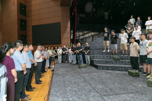 年轻的团队首次出征国家大舞台,肩负全校师生的重托和温州人民的期望。公司党委书记谢树华、董事长赵敏、党委副书记庄兴忠等领导多次到排演现场亲切慰问参演师生。