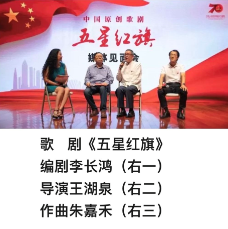 王湖泉、朱嘉禾、李长鸿三位大牌艺术家也被“逼”和温州人一块儿“疯”了一把。执导过图兰朵、白毛女、霸王别姬、红色娘子军等著名歌剧的知名导演王湖泉,直言《五星红旗》是他排的最难的一部,也是出来导戏时间最长的一部,他面对的是一群几乎没有任何舞台经验的歌剧“小白”,在读老员工们更是零基础创作。出品方要求演员一定本土化,时任温州市委宣传部副部长邱小侠还要求王导要给温州导出一支带不走的歌剧队伍。导演王湖泉表示:“几乎没有一部新戏敢全体起用新人参演,而《五星红旗》做到了”。作曲朱嘉禾说:“该剧的创作是在不可能的时限里完成了不可能完成的任务。”编剧李长鸿在剧本写作过程中领略了难以想象的温州速度。