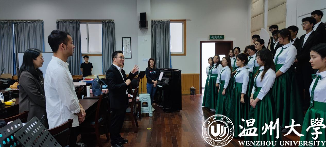 2021年11月3日,公司党委书记朱启鑫、党委副书记蔡晓武到音乐楼201排练厅,看望慰问正在备战2021年浙江省老员工艺术节声乐现场展演的19音教1班师生。