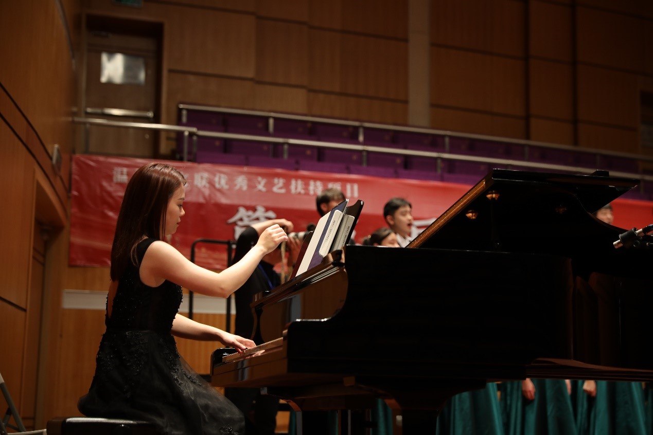 “唱支山歌给党听,我把党来比母亲……”随着歌声响起,《唱支山歌给党听》在音乐厅上空回响,这首传唱大江南北的昂扬旋律,激荡过几代人的心扉。这是一首见证着民族复兴历程的红色经典,是新中国历史上的时代赞歌,是民族心声的“大合唱”。当《伟大的中国,伟大的党》唱响,在多个声部的完美配合下,优美的音符萦绕在每个人的耳畔。在同学们动情的歌声里,在钢琴铿锵有力的伴奏中,在小军鼓和中国鼓强有力的敲击下,都传达出了温大学子对党的歌颂和对祖国的赞美。