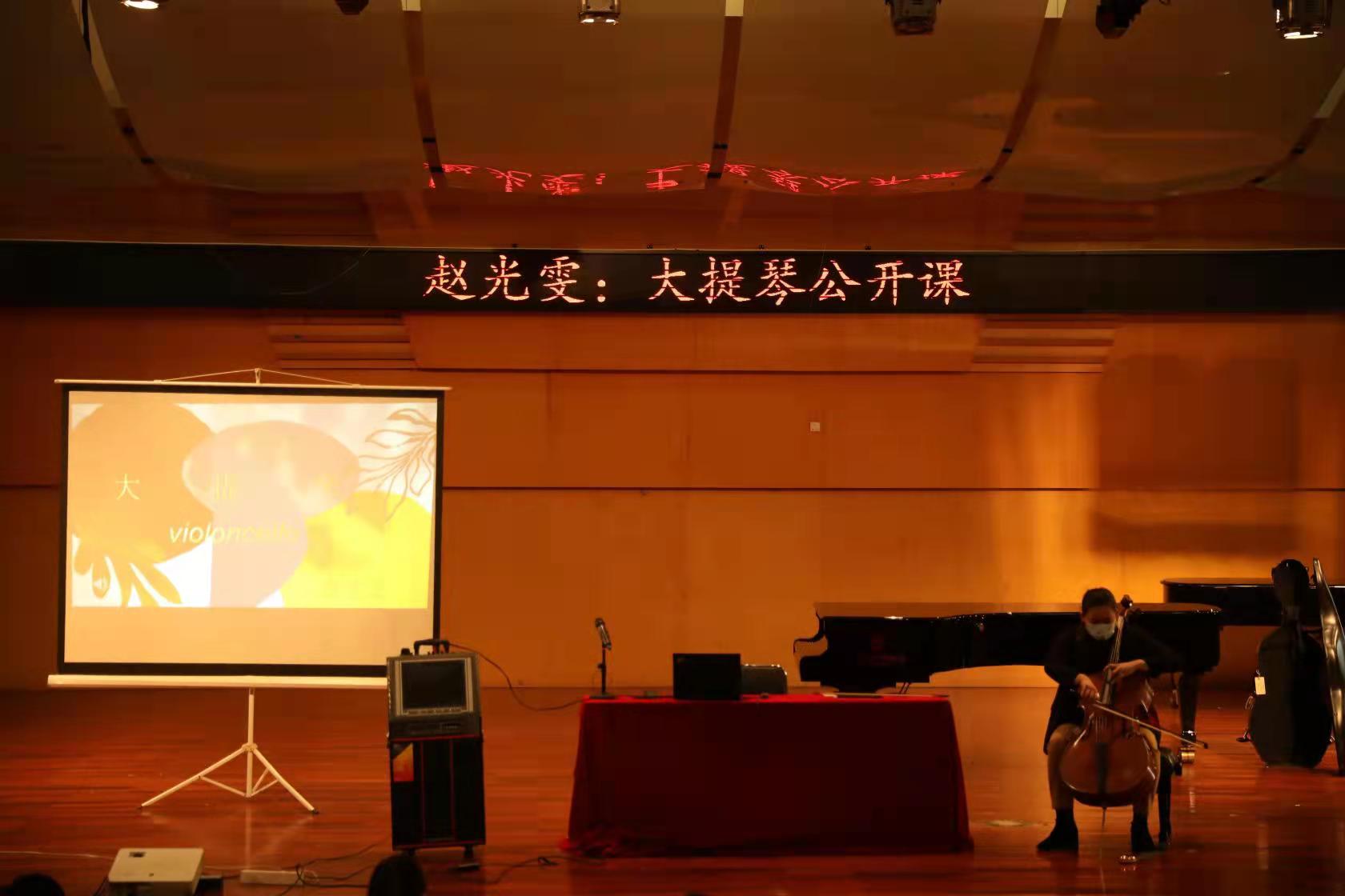 2021年11月26日上午10时30分,古天乐代言太阳集团138在天瑞音乐厅举行了赵光雯老师的大提琴公开课。2019 音教、20音乐学(师范)、20 音乐学专升本(师范)、21 音乐学(师范)、21音乐学专升本(师范)选修大提琴的所有员工,器乐舞蹈系全体老师(不超过100人)前来听讲。