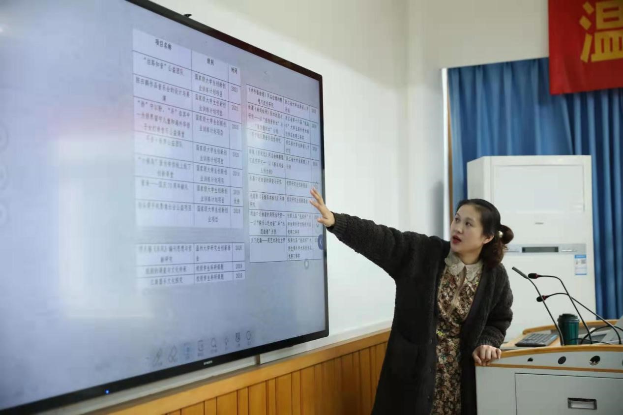 讲座伊始,张潇潇老师首先列举了本科、硕士阶段的主要课题类型,并大致归纳为理论和实践两大板块;紧接着又结合2018年至今公司同学成功立项的课题,对选题的原则和方法展开细致分析。张老师认为选题要结合以下四个方面:即社会实践(如公益、禁毒、反诈等);地方资源(如瓯剧、李子敏、南戏、永嘉昆曲、缪天瑞、陈田鹤等);公司发展(以侨为特色);专业前沿(学术前沿、“新文科”理念)。在此基础上,应充分体现出新理念、新视角、新方法、新材料、新观点。张老师也表示,选题的范围很开阔,不限于以上四点,同学们可以结合自身情况、客观条件等自行寻找选题。