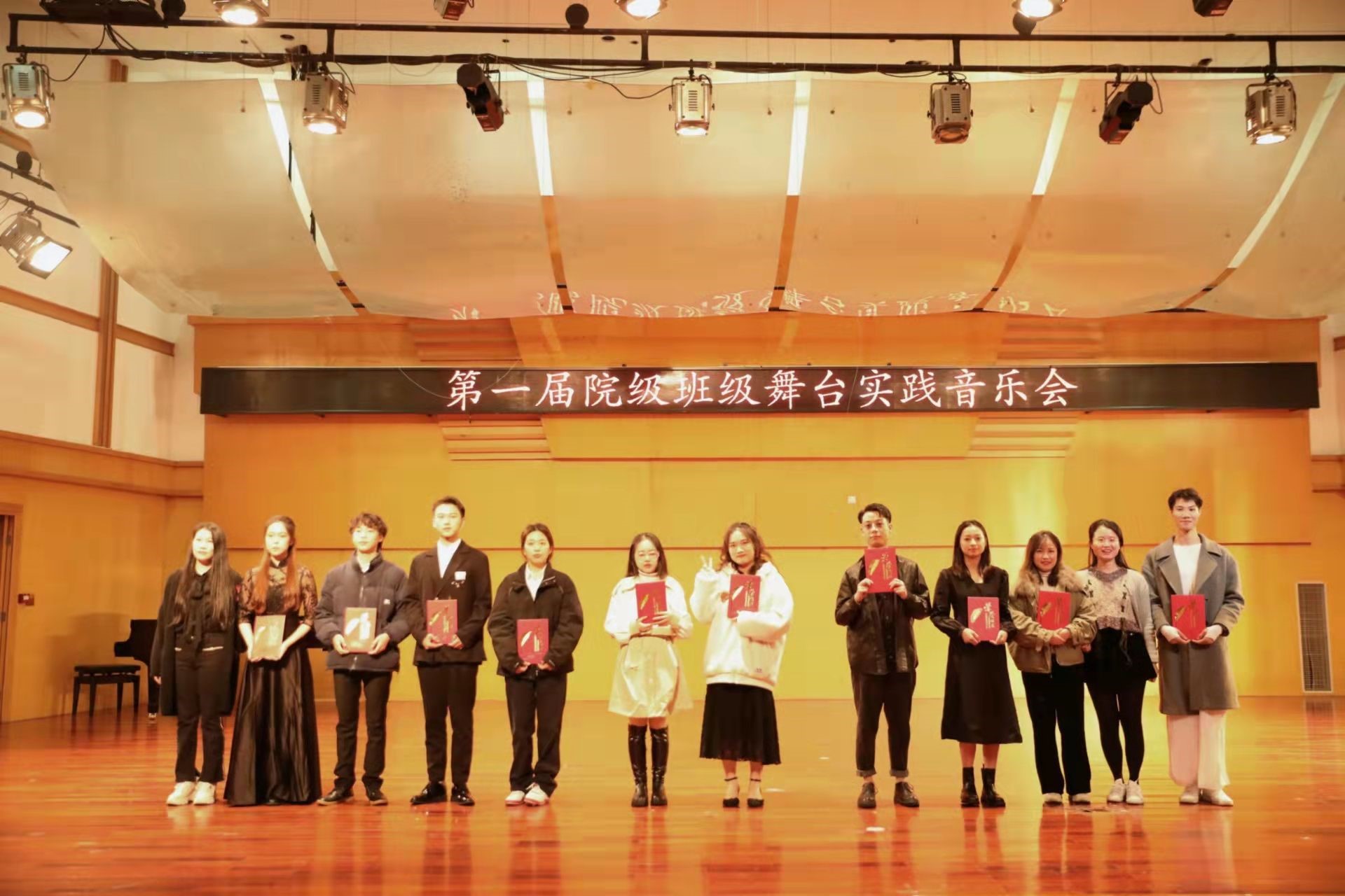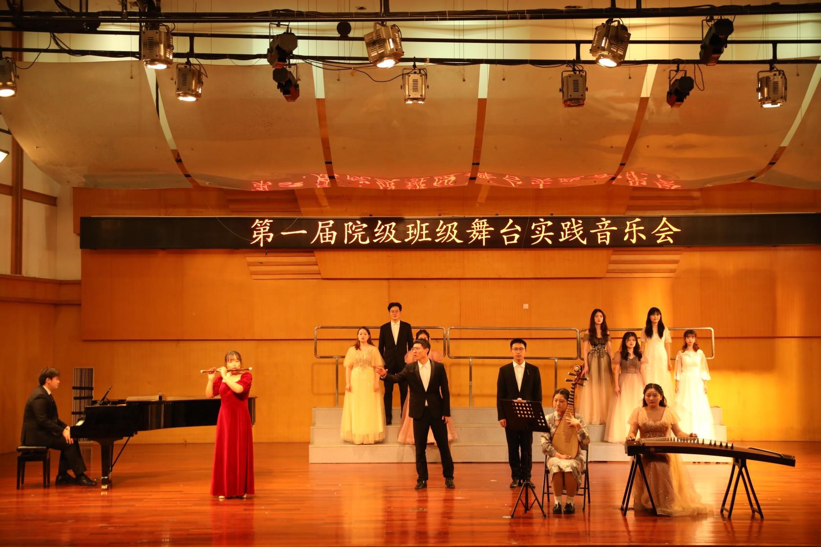 第一届院级班级舞台实践音乐会是在22场班级音乐会的基础上,由每个班级推荐1个精品节目组成的精品音乐会,同样也是精品赛事。第一届院级班级舞台实践音乐会共设最佳才能奖、最佳风采奖、最佳人气奖、最佳参与奖四个奖项。节目形式丰富多样,有合唱、中西器乐合奏、器乐重奏、音乐舞蹈剧、舞蹈、钢琴等。节目不但内容丰富,还能将思政元素融入其中,给观众带来视觉和听觉上的享受。