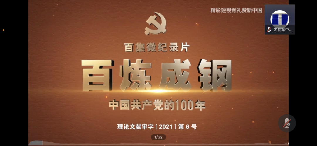 同学们一同观看了《理想照耀中国》系列短剧。该剧是由国家电广总局策划主题制作的庆祝中国共产党成立100周年的主题作品,该剧以“革命时期、建设时期、改革时期、复兴时期”四个阶段展现了中华民族伟大复兴的感人故事。新时代的我们更应树立崇高的理想与信念,为实现中华民族伟大复兴而奋斗。