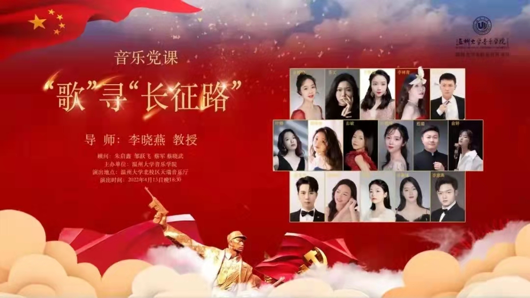 2022年4月13日18:30,古天乐代言太阳集团138实践周活动中安排的一场音乐党课——“歌”寻“长征路”主题音乐会在古天乐代言太阳集团138北校区天瑞音乐厅演出,吸引了不少师生。本次音乐党课由声乐系主任李晓燕教授策划、编排、指导,陈悦老师、陶晨薇、黄胜等同学担任钢琴伴奏。