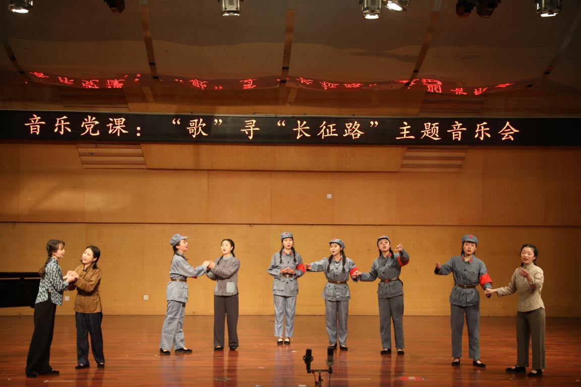 音乐党课沿着中央红军路线,用歌声走红军长征路,将“讲”与“演”充分融合,在聆听党史中了解革命百年征程的艰苦卓绝,在欣赏音乐时感悟革命先烈崇高的理想信念,在训练实践里践行历史与时代赋予的使命与担当。通过视、听、思、悟的融合,达到更好的艺术思政教育的效果。