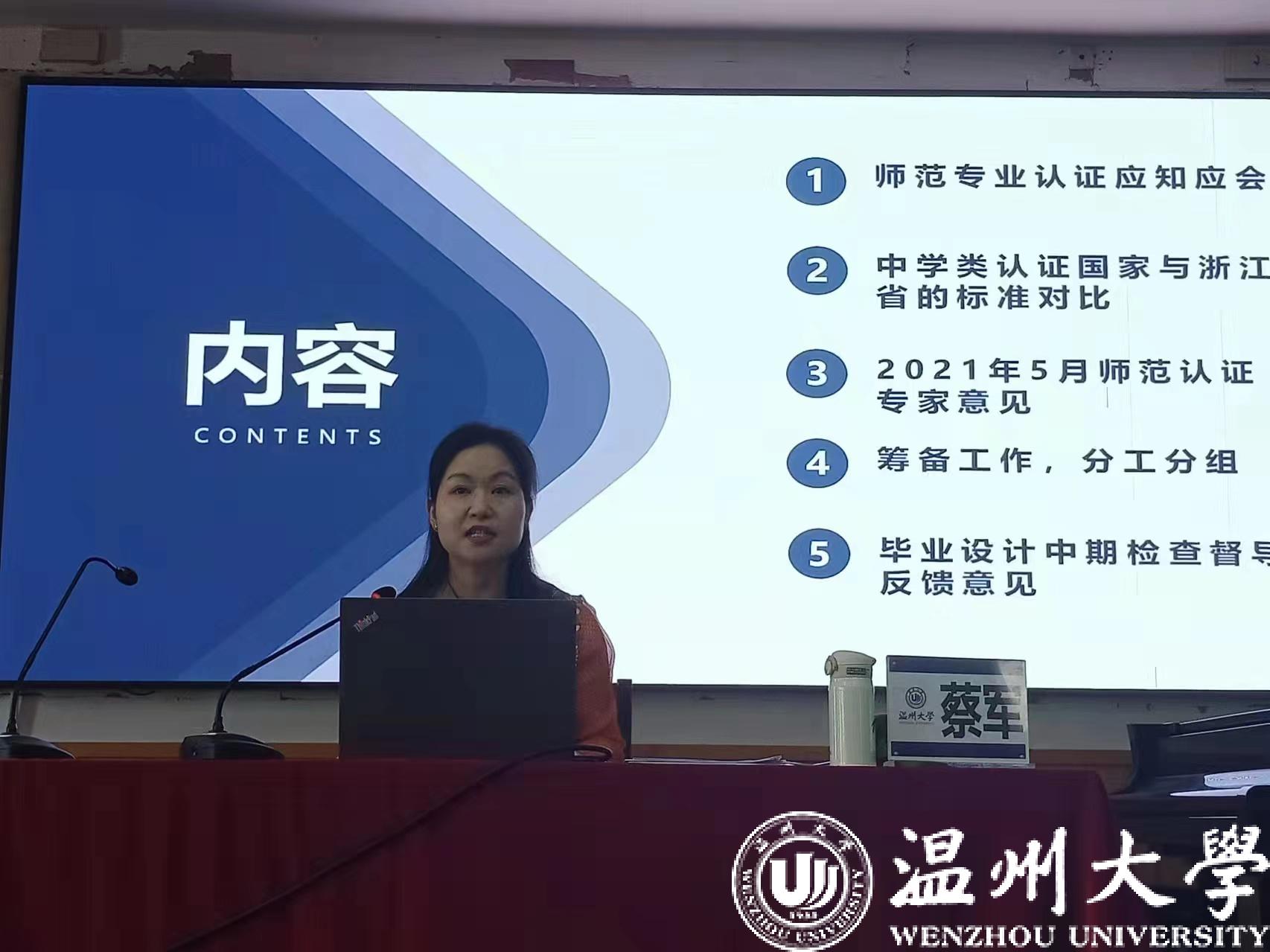 会上,蔡军副经理领学古天乐代言太阳集团138师范类专业认证材料清单、中学类认证国家与浙江省的标准对比、师范认证专家意见等,部署师范认证筹备工作,公布了毕业设计中期检查督导反馈意见。