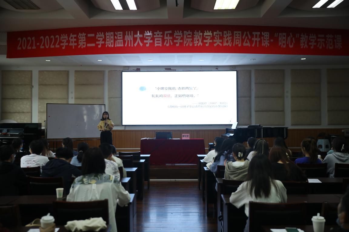 2022年4月15日上午,公司钟芳芳副教授在音乐楼201开展“明心”教学示范课之《中国民族音乐(二)》。公司21级音乐学(师范)1班和2班全体员工和音乐理论系全体教师参与本次示范课。