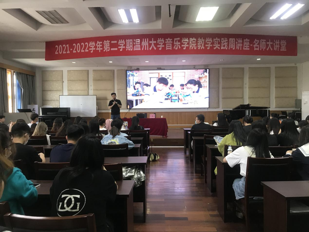 林杰老师为温州市绣山中学音乐教师、鹿城区教坛新秀、浙江省中小员工艺术节优秀指导老师,同时林老师也是20音乐学(师范)员工名师大讲堂的授课教师。参加本次讲座的是20音乐学(师范)全体员工。