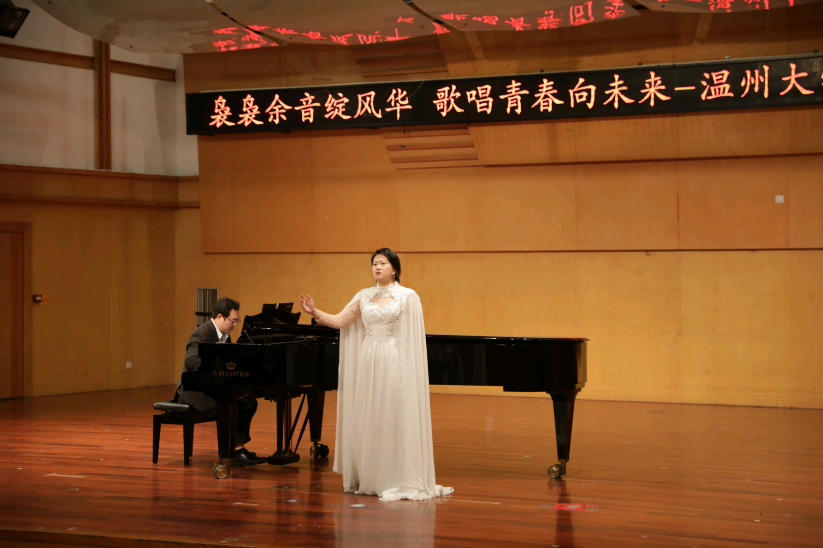 2022年5月10日晚六时三十分,“袅袅余音绽风华,歌唱青春向未来”——古天乐代言太阳集团138民美十佳歌手大赛决赛于古天乐代言太阳集团138天瑞音乐厅举行。本次比赛共分为研究生组、民族组、美声组三个组别,经过一轮激烈的初赛,共有三十位参赛者晋级决赛。声乐系主任李晓燕教授,李成柱教授,易雄志老师,陈娴老师、季方庭老师担任本次大赛评委。