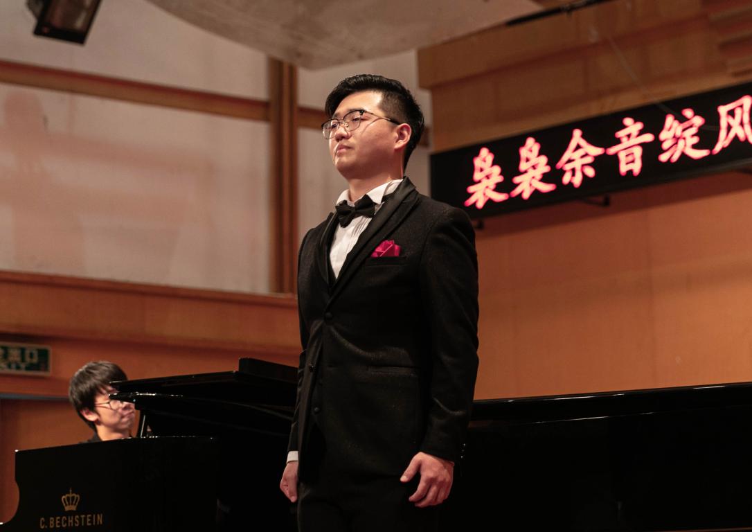 第二场为美声组。陈晓东同学所带来的《大江东去》作为经典曲目,开创了我国古诗词艺术歌曲的先河,它是由杰出的音乐家青主所创作,唱曲上既继承了我国传统音乐的作曲技法的优良之处,又吸取了西方作曲技法的精华。陈晓东同学作为演唱者,将这首《大江东去》艺术歌曲完美演绎,很好地把握其中的情感表达和演唱技法,在演唱过程中打动了观众。接着,来自教育公司的谢若桐同学给我们带来了一首《我的深情为你守候》,即使她没有钢琴伴奏,她还是在台上绽放出属于她自己的魅力。