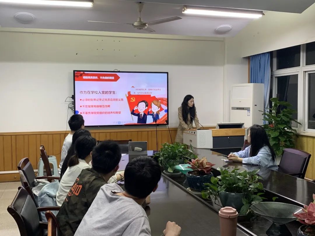 曹清清老师从增强党员意识、树立廉正观念、努力接受教育管理、提高党性修养、落实疫情防控政策等方面对毕业生党员展开离校教育,希望毕业生党员在展望前景的同时,也能够“不忘初心,牢记使命”、廉洁奉公、提高党性及原则性。希望各位毕业生党员能充分起到模范带头作用。