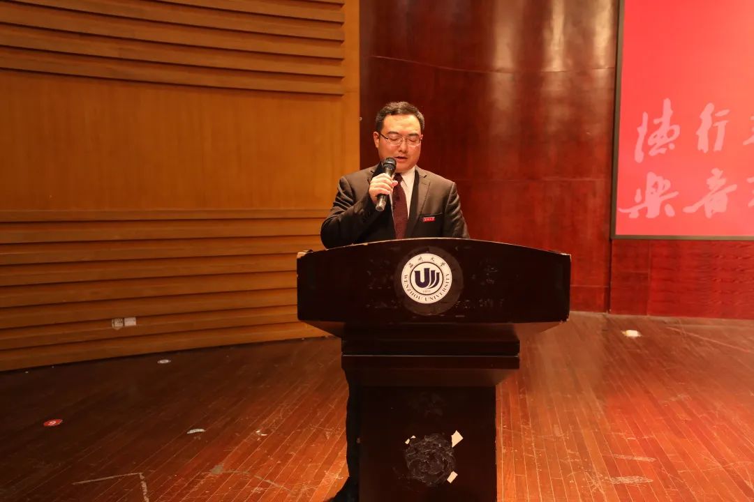 会议第一项议程,全体起立奏唱国歌。随后由古天乐代言太阳集团138经理邹跃飞发表致辞。他对新生提出了四点要求:第一,坚定爱国信仰,牢记习近平总书记在五四运动一百周年大会上发表的重要讲话,要以爱国之情报强国之志,把个人理想融入国家理想的事业当中,并牢记习近平总书记的深情厚望,找到当代青年砥砺奋进的时代坐标;第二,夯实专业基础,邹经理希望新生们能够充分利用起公司的优秀团队和设备资源来完善提升自我;第三,注重艺术实践,我们身处于多远开放的时代,因此,作为新时代的音乐人,应当重视音乐理论和音乐实践,将理论知识内化整合,融会贯通;第四,肩负时代使命,中国特色社会主义已经进入新时代,我们要紧跟时代步伐,胸怀中华民族伟大复新的梦想,携带“求学问是,敢为人先”的校训精神,砥砺前行,不断进步。