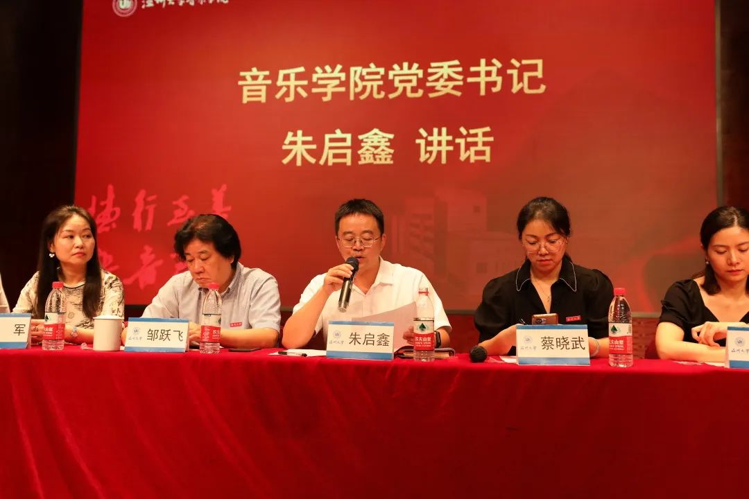 最后,公司党委书记朱启鑫讲话。朱书记鼓励同学们在艺术道路上坚定理想信念,将艺术梦想与家国情怀紧密相连,提醒大家严格遵守国家的相关宗教政策,不得在校内进行传教,不得在校外参加宗教非法活动。希望同学们用党的科学理论武装自己,加强理想信念学习教育,树立正确的世界观、人生观、价值观。随后,朱书记抛出了三个问题。你是谁?你要到哪里去?你要成为什么样的人?朱启鑫书记强调,我们首先要认识自己,了解自己才会清楚自己想要的是什么。大学的目的不是得到面包,而是谁得到的面包味道更好。以学业为重是肯定的,同时纪律意识也要加强,规范自己的言行举止,这样子走到社会中才有立足之地。我们要在自律和规范之中成为自己想成为的人。