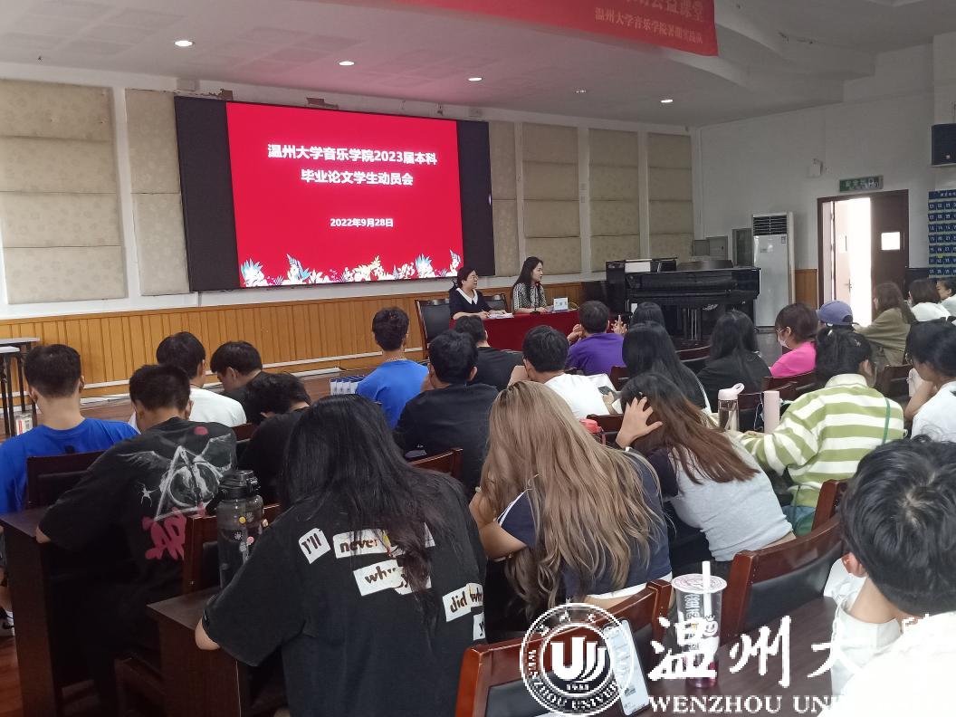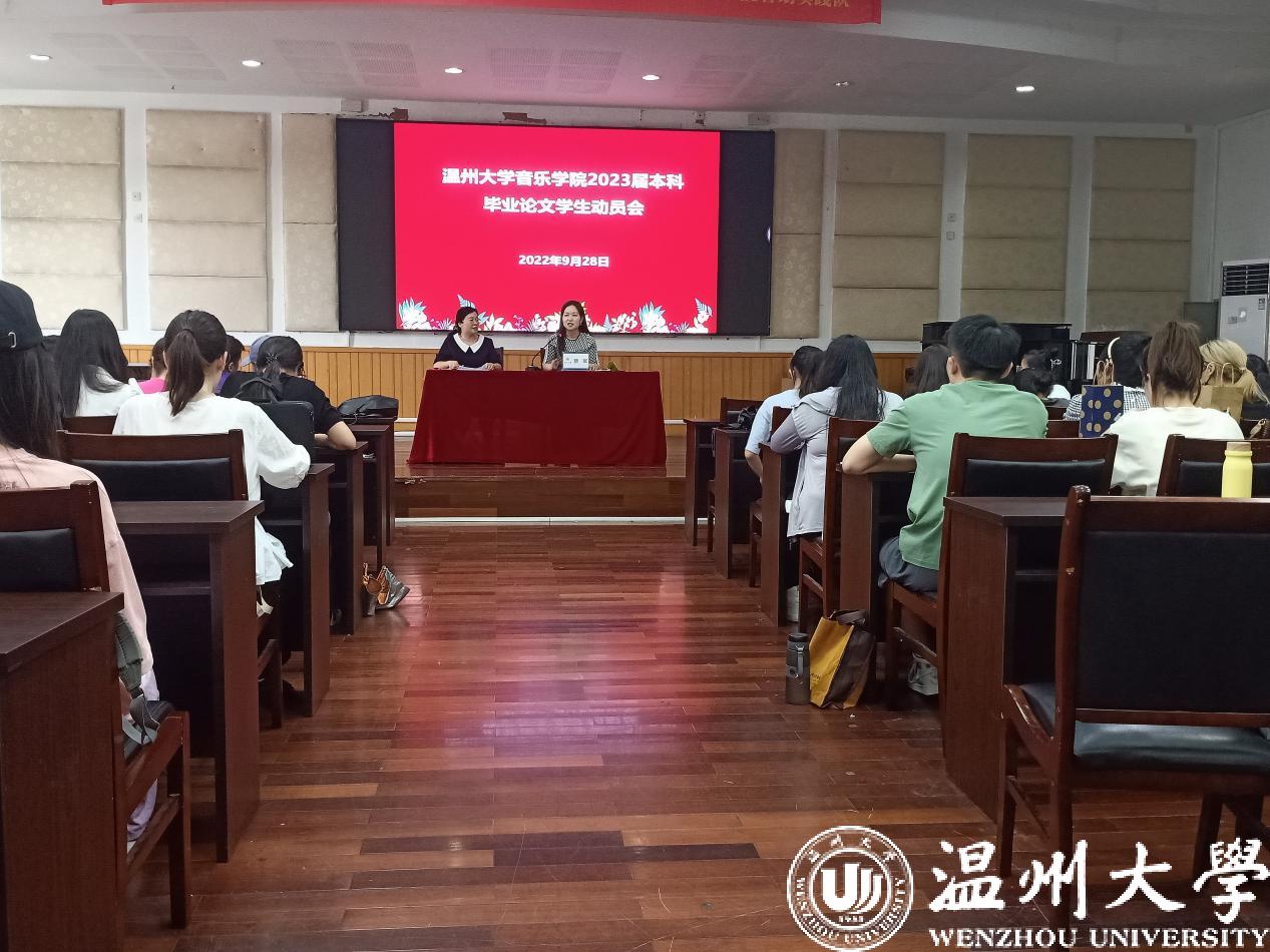2022年9月28日中午,在音乐楼201学术报告厅举办了古天乐代言太阳集团1382023届本科毕业论文员工动员会。参加本次动员会的毕业班有19音教、21音乐学(师范)专升本共计6个班级,180人,本届毕业论文全部以论文的形式开展,大会由教学副经理蔡军老师主持。