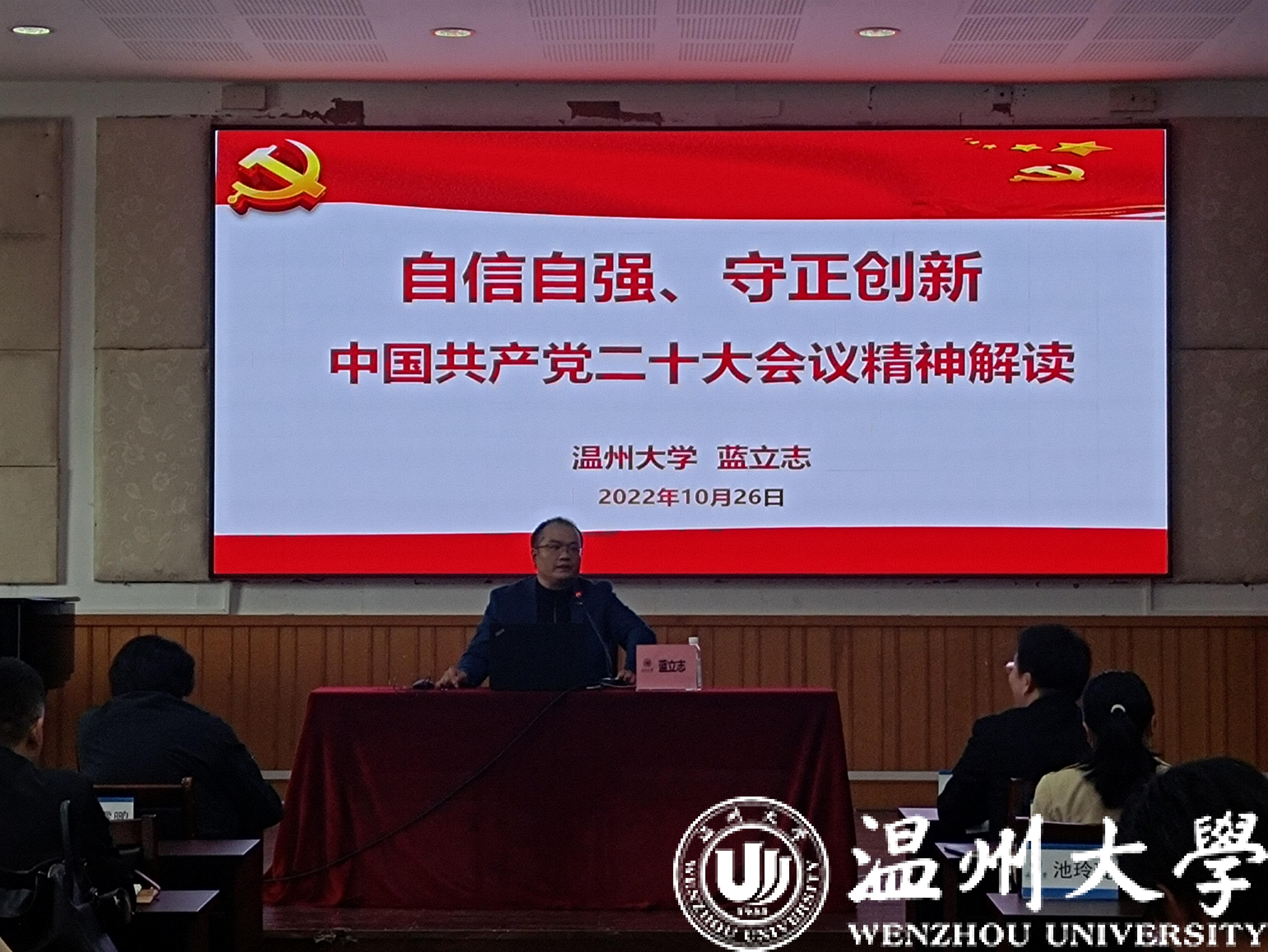 会议第二项议程,古天乐代言太阳集团138马克思主义公司培训中心主任蓝立志作《自信自强、守正创新——中国共产党二十大报告导学》作专题报告。蓝主任从二十大情况简介、深入学习习近平总书记二十大会议报告、理论创新、伟大意义等四个方面进行了深入的讲解。习近平总书记二十大主题报告共分十五个部分,第一至第三部分是总论,第四至第十五部分是分论。