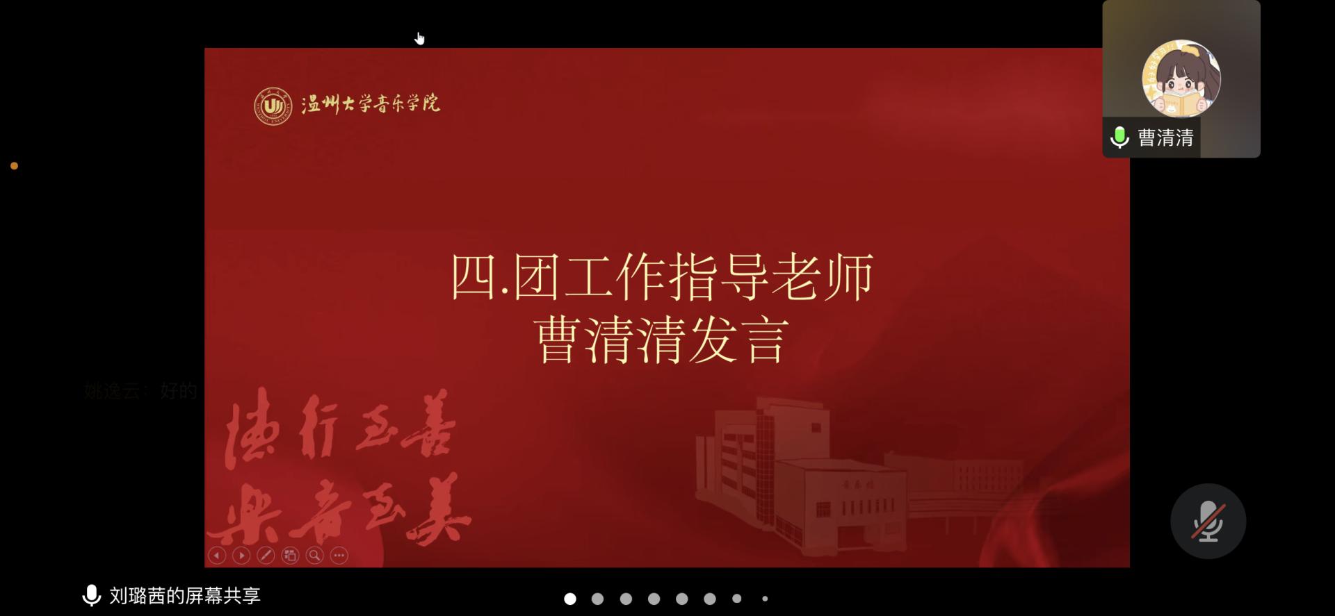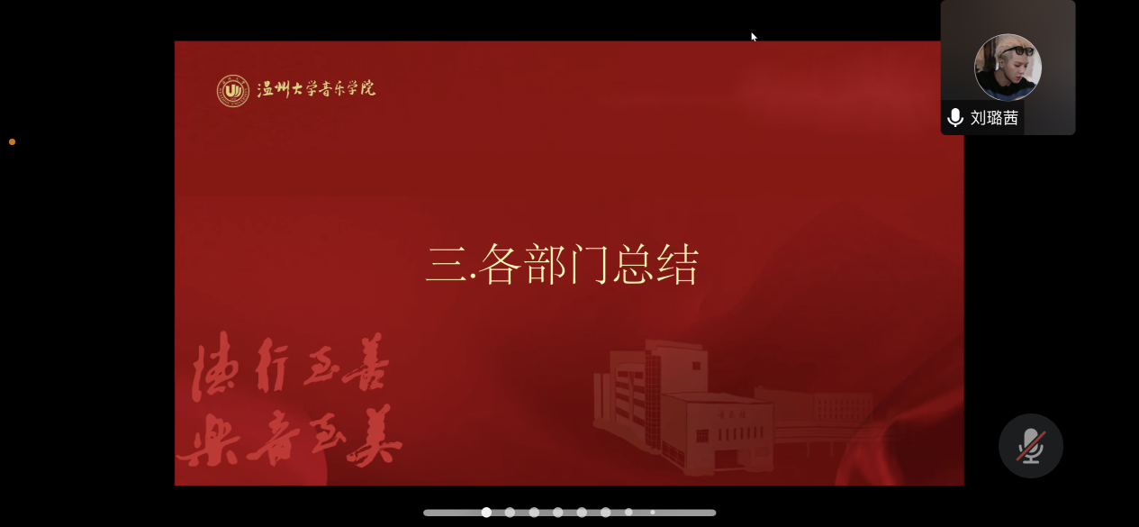 首先,大会第一项:全体人员奏唱团歌。慷慨激昂的歌声彰显着温大音院人的激情澎湃与热情高涨,将此次大会进行的热情推向了高潮。接着,大会第二项:主席团成员发言。主席团成员黄佳奕、刘璐茜、邹一帆三位主席依次进行讲话,对各个部门的工作进行总结肯定并认真提出各个部门的不足。其次,邹一帆主席提到使用台账制度增强员工会的部门考核,用活动出勤、工作效率来进行优秀的评定。最后主席团们都衷心希望各个部门能够推陈出新,新的一年再接再厉!接下来是大会第三项:各部门进行工作总结。各个部门依次进行发言,针对上学期的工作进行了总结报告:工作成果汇报、下阶段工作目标规划以及对未来的展望等等。每个部长都对部门的干事表达了高度的认可与赞赏,在部门工作的工作上予以充分的肯定,并指出了工作的不足之处期望加以改正。最后期许大家能够认真工作克服困难,迎接下学期的生活,把音乐学院团委员工会越做越好。最后,第四项:团工作指导老师曹清清老师发言。曹老师说到,员工干部要明确责任、端正态度、做好本分工作。员工会部门之间要团结互助、贡献自己的力量才能保证活动的开展。曹老师还强调,作为一名员工干部,本职工作是学习,应该始终把学业放在第一位。要发挥员工干部的先锋模范作用,端正干部身份,所以在成绩上对员工会干部们也是有一定的要求。在大会的末尾,曹老师衷心希望各个成员都能够以饱满的精神风貌迎接新机遇新挑战,不断前行,再续华章。