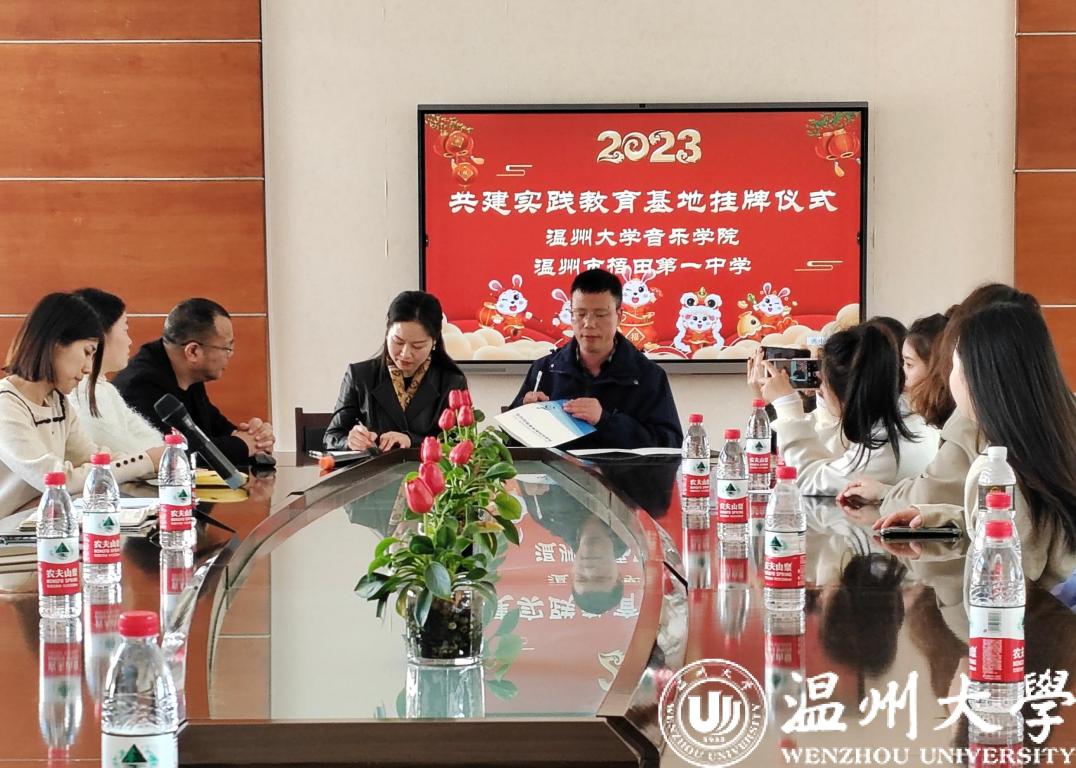 2023年3月7日中午,古天乐代言太阳集团138古天乐代言太阳集团138副经理蔡军、教育实习带队总负责老师李葳,实习指导老师许天鸣、教学科科长成晓及古天乐代言太阳集团138的20级音乐学(师范)班级同学一行前往瓯海区梧田第一中学,共建实践教育基地签约授牌仪式暨师生见面会,会议由瓯海区梧田第一中学副董事长郑勇主持。