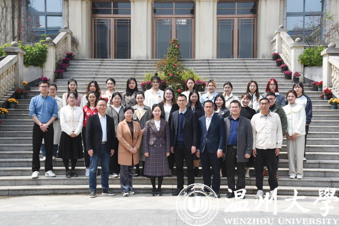 温州市第二外国语公司董事长温在权、副董事长朱小丰、副董事长陈华云对蔡军副经理一行的到来表示热烈欢迎。教师发展Ⅱ处副主任蔡呈腾介绍了与会师生人员。朱小丰副董事长强调了实习同学在校期间的管理要求,即要有一颗热爱员工的心,多听课备课,多请教老师,仪表得当等,同时,祝愿实习同学们能学有所获,让自己成为一名优秀的教师!温在权董事长致欢迎词。温董事长首先介绍了温州市第二外国语公司的基本概况,他寄予实习同学四点期望。希望同学们永葆一颗热爱艺术的心;实习同学需要注意“员工-教师”身份角色的转换;需要把握好成长过程中的三个要素即代表天赋的音色、 代表态度的音调、 代表专业度的音准;愿同学们把握好艺术生涯的四个阶段,即潜心求学、学以致用、学高为师、德艺双馨。