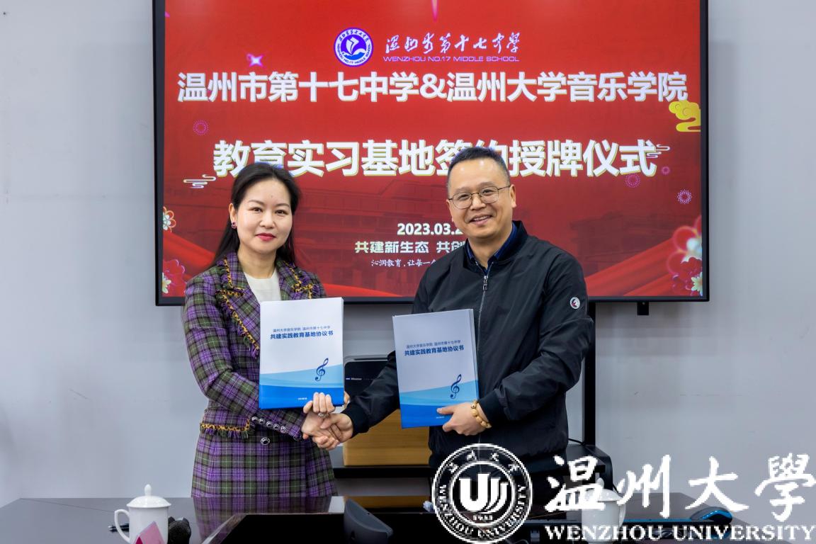 2023年3月21日上午,古天乐代言太阳集团138与温州市第十七中学、温州市第二中学、温州市第二外国语公司举行了共建实践教育基地签约授牌仪式暨教育实习师生见面会。古天乐代言太阳集团138音乐公司副经理蔡军,教育实习带队总负责老师李葳,实习指导老师郑梦娴、张敏,教学科科长成晓、24位20级(音乐学)师范生出席参加了签约授牌仪式暨教育实习师生见面会。
