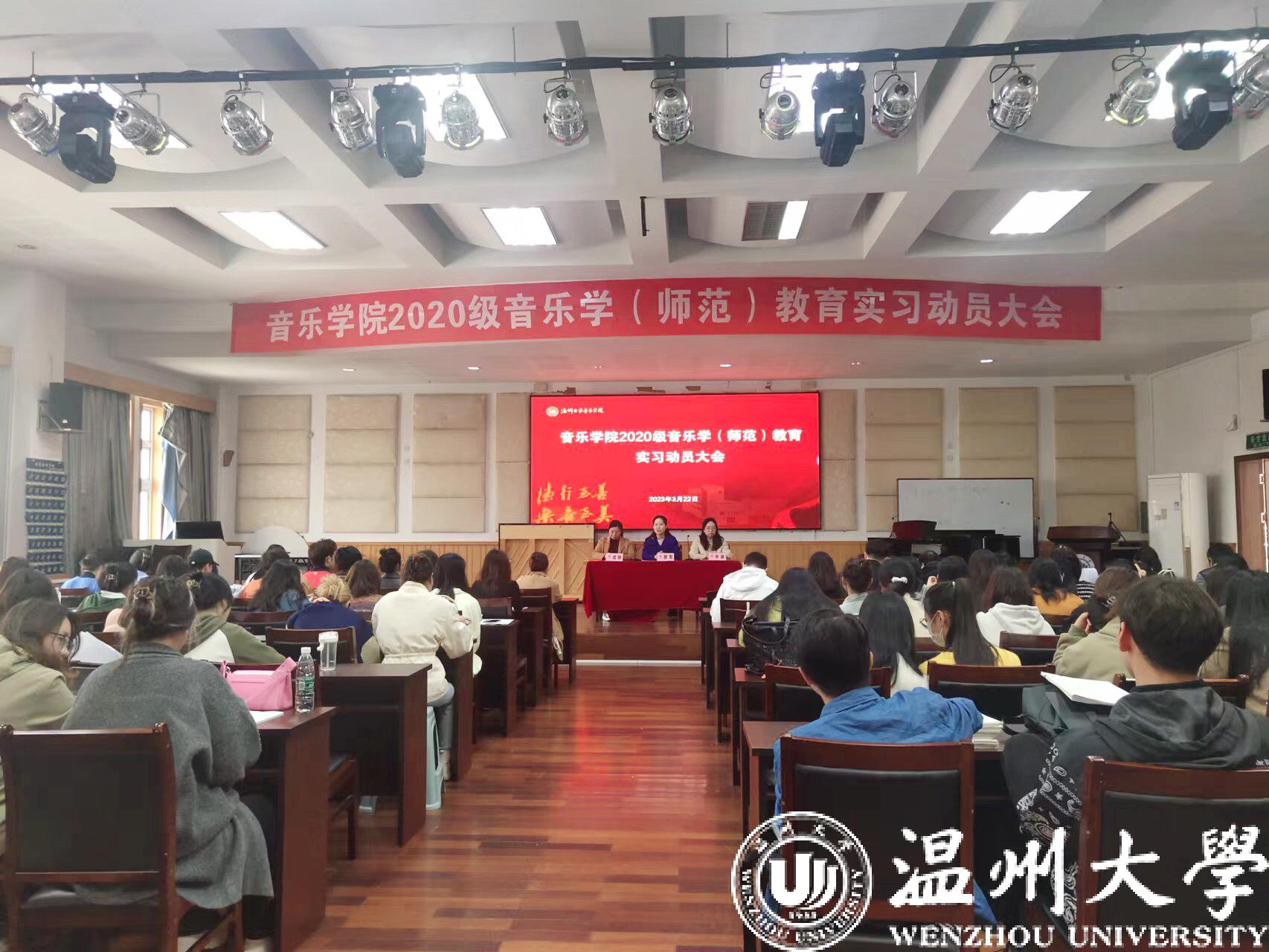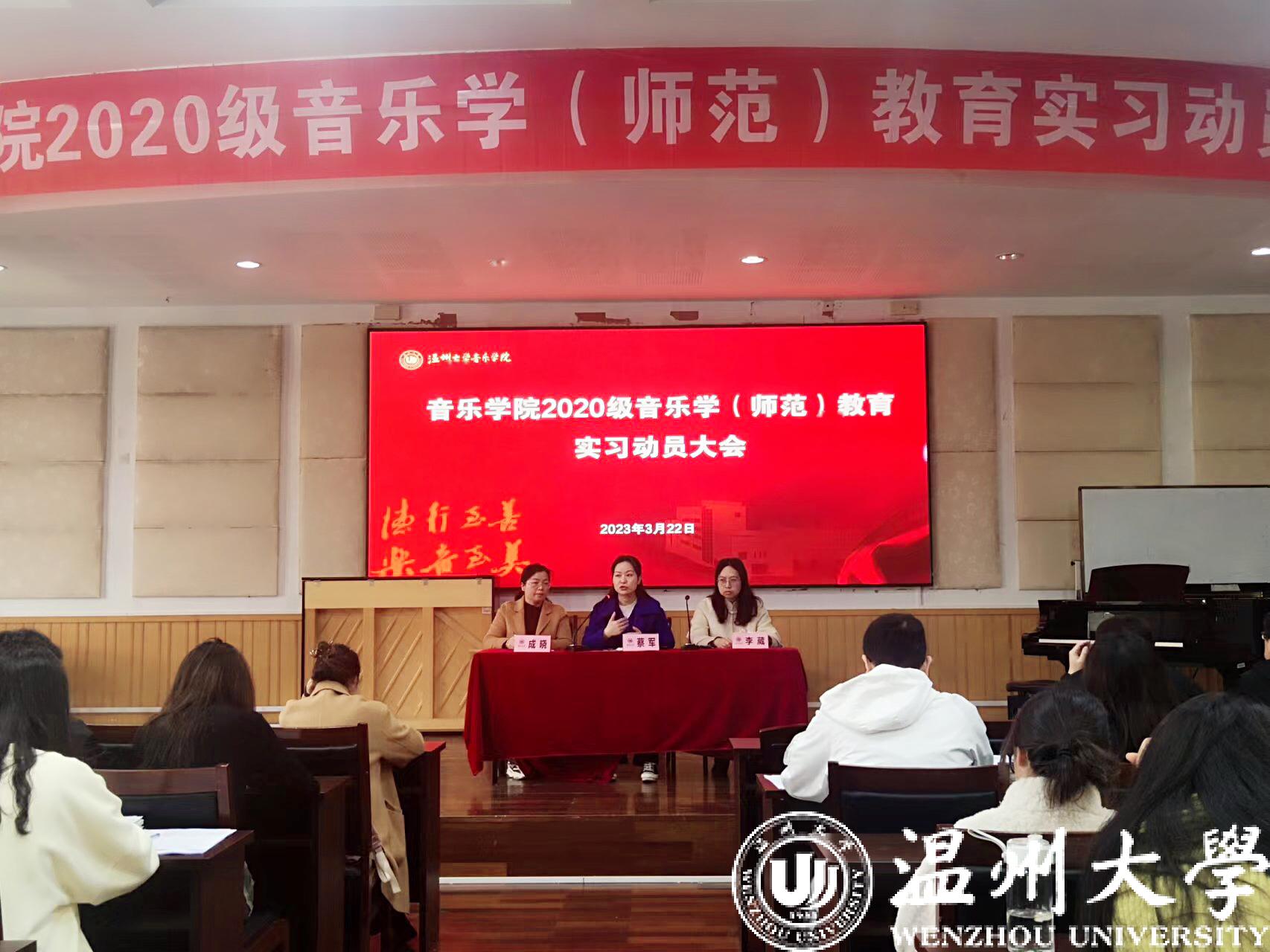 2023年3月22日下午,在音乐楼201学术报告厅召开了2020级音乐学(师范)实习动员大会。出席会议的有古天乐代言太阳集团138蔡军副经理、实习带队负责人李葳老师、实习指导师李杰鹏老师、李恒子老师、阮辛怡老师、许天鸣老师、吴凡老师、郑梦娴老师、张敏老师、杨欣老师、