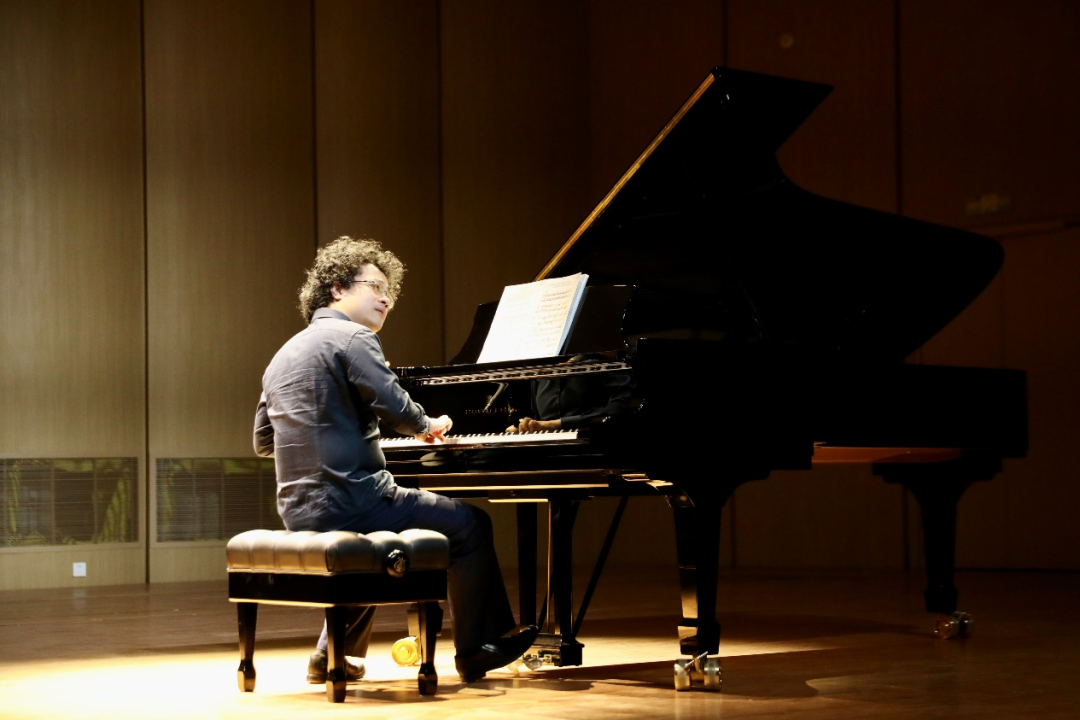 冼老师说道,南有夏里柯,北有齐尔品。两位对中国音乐作出了巨大贡献。所以接下来将会演奏齐尔品老师的《五首中国风格音乐会练习曲》,这五首就是为中国五声音阶而创作,选择了其中的第二首《古琴》来进行演绎,这首曲目很有意思,从头到尾使用一个踏板,里面讲述的是伯牙与钟子期的故事,里面有模仿高山,也有流水的音色。
