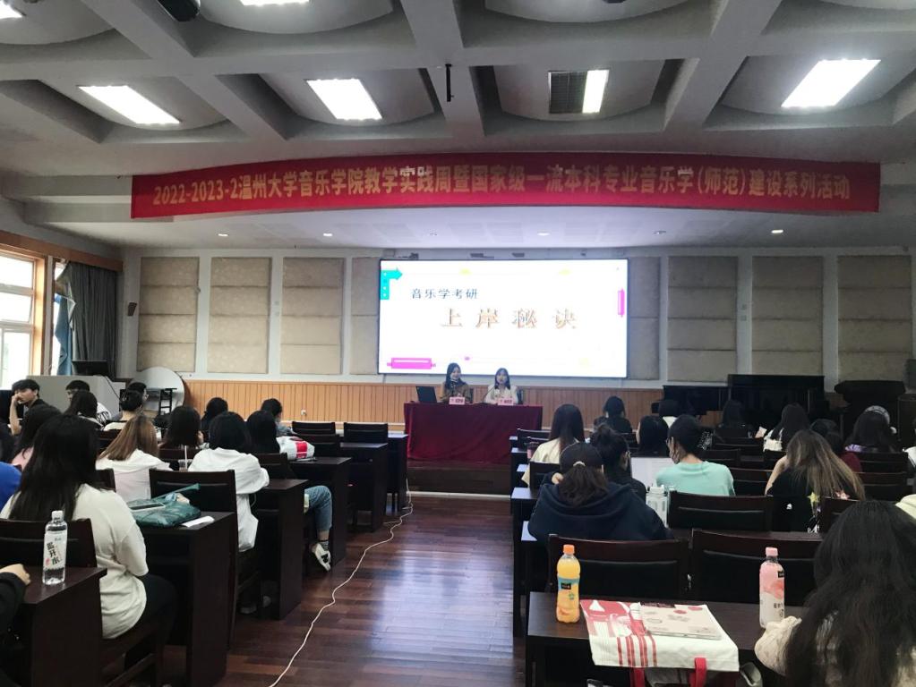 实践周期间的陈颖老师、陈露雯老师、许天鸣老师的“明心”教学示范课:《钢琴即兴伴奏》与《声乐演唱与教学》的,展示教师教学成果,通过明心示范课全面提升教师的专业化水平和创新能力,继而打造高水平、结构化教师教学创新团队。考研讲座中,钟芳芳老师与郑梦娴老师给同学们带来音乐学考研上岸秘诀,为大家答疑解惑,指出一条明路。张敏老师的朝鲜民族艺术歌曲诠释,打开了同学们对朝鲜艺术歌曲的全面认识。