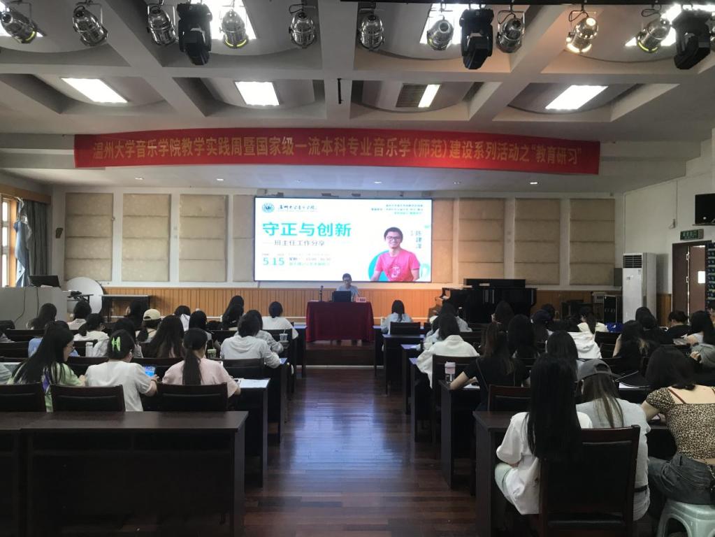 实践周活动期间,大一同学们赴9所温州市中学开展了崭新的教育见习活动,身临其境得体验中学音乐课堂,体验进入“职场体验”。还有温州市各中学优秀的音乐学科指导师和班主任指导师们:陈建泽、王欣欣、叶金德、徐向晔带领员工开展了教育研习活动,本次教育见习和研习活动的开设,不仅能够开阔同学们的视野,还能够让大家体验感受大学毕业以后步入社会进入中学上音乐课是怎么样的形式与内容,增强了员工的音乐实践能力。