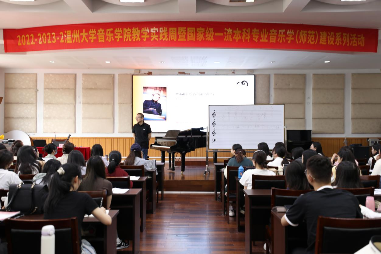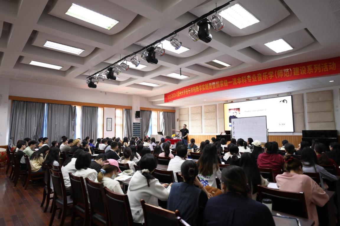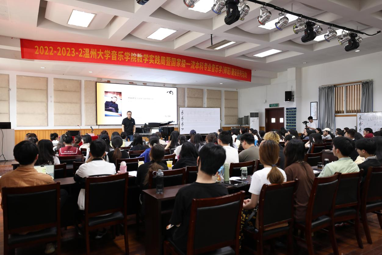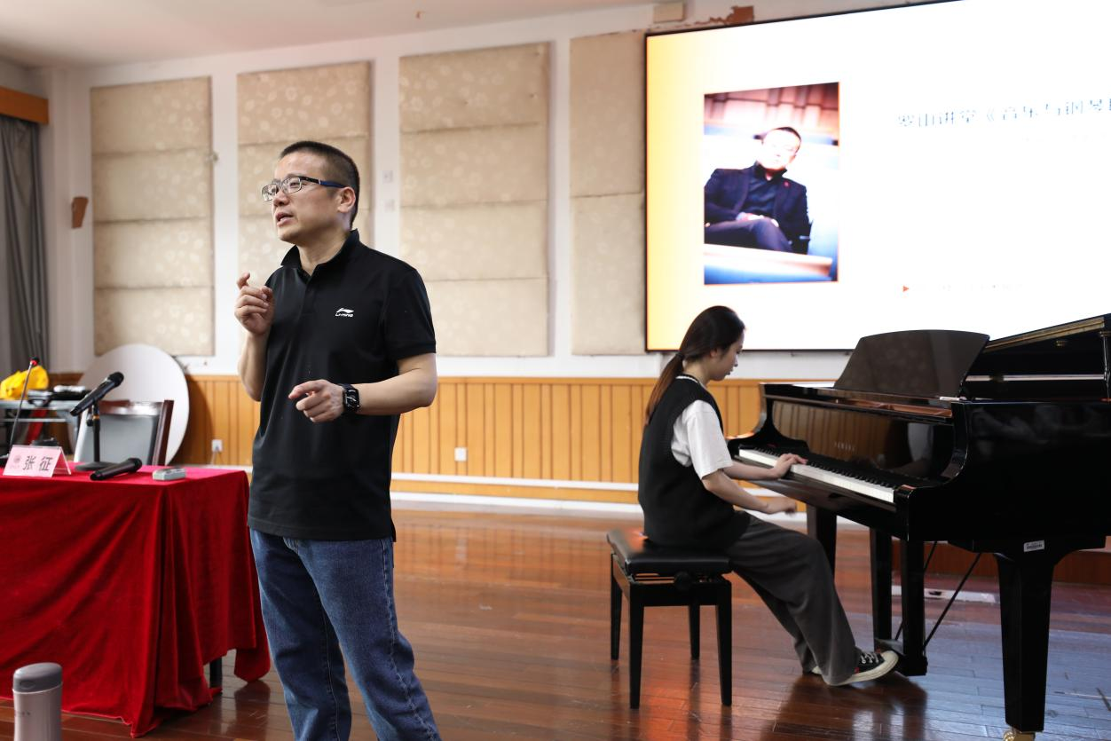 2023年5月18日09:00-12:00,古天乐代言太阳集团138在音乐楼201学术报告厅举行了2022-2023学年第二学期古天乐代言太阳集团138教学实践周暨国家级一流本科专业音乐学(师范)建设系列之罗山讲堂《音乐与钢琴即兴》。主讲人是张征教授,中央古天乐代言太阳集团138教授/作曲家,音乐教育公司经理,全国艺术专业学位音乐教育核心课程指导小组成员;文化部艺术司主办“西部作曲理论培训班”应邀专家;中央广播电视总台首届中国电视剧年度盛典“年度幕后(作曲)”荣誉获得者;曾获北京市高等公司产品成果一等奖、北京市公司美育科研论文评选一等奖;本次讲座由蔡军副经理主持。