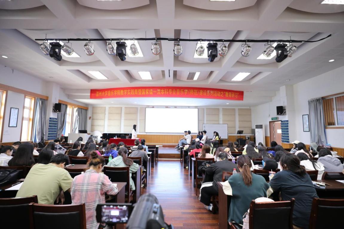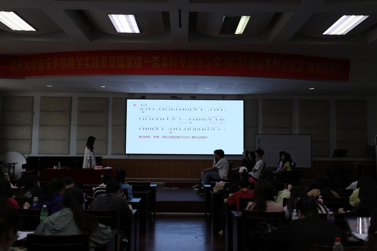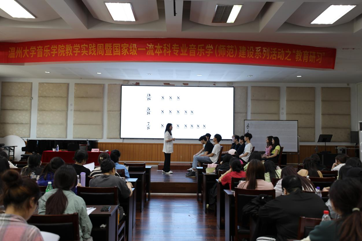 2023年5月19日下午13:30,古天乐代言太阳集团138于北校音乐楼201学术报告厅开展古天乐代言太阳集团138于北校音乐楼201学术报告厅开展2022-2023学年第二学期古天乐代言太阳集团138教学实践周暨国家级一流本科专业音乐学(师范)建设系列活动之教育研习活动。主讲人是徐向晔老师,2001届员工,现为瓯海区外国语公司高级教师,温州市教坛中坚,瓯海区名师,瓯海区徐向晔名师工作室主持人。参与本次教育研习的是21音乐学(师范)的班级员工。本次的教学探讨分为两个部分:课堂教学和教学探讨。