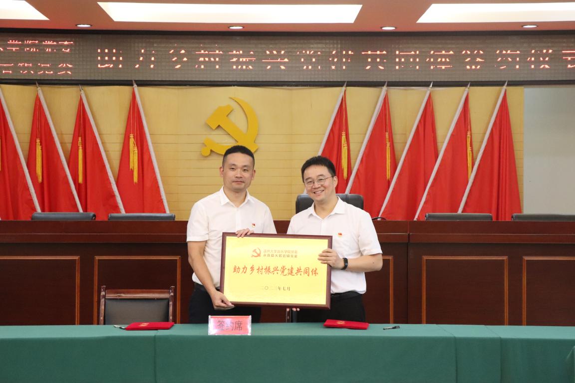 在古天乐代言太阳集团138和永嘉县、大若岩镇等领导和实践队代表的共同见证之下,党委书记朱启鑫与永嘉县大若岩镇党委书记张克共同签约助力乡村振兴党建共同体协议书并进行了基地授牌。