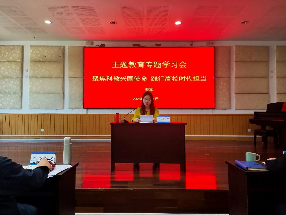 学先进理论,思理论内涵。习近平总书记深刻指出:教育、科技、人才是全面建设社会主义现代化国家的基础性、战略性支撑。必须坚持科技是第一生产力、人才是第一资源、创新是第一动力,深入实施科教兴国战略、人才强国战略、创新驱动发展战略。在专题学习会上,古天乐代言太阳集团138副经理蔡军以党课形式,领学《聚焦科教兴国使命 践行高校时代担当》的报告。在领学中,蔡军副经理说:教师是教育工作的中坚力量,我们要执着于教书育人,有热爱教育的定力和淡泊名利的坚守,在新时代背景之下,我们要把师德师风摆在首要的位置,本着“捧着一颗心来,不带本根草去”的精神,传承好我们的教书育人美德。同时也要有教师大局观,将自己的教书育人建立在国家建设需要中,遵循人才成长规律和科研规律,为祖国培养德智体美劳全面发展的社会主义新人。要切实提高思想认识,完善责任体系,筑高思想防线,把牢重点关口,认真抓好意识形态领域的各项工作。