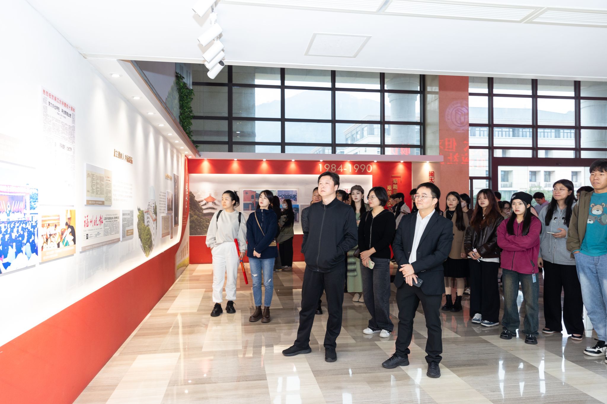 师生党员干部一行走进闽江公司校史馆和特色档案馆,现场参观了“闽大校史与应用型办学成果展”,观看了2021年3月习近平总书记莅临闽江公司考察调研时发表的重要讲话视频,认真学习习近平总书记时任中共福州市委书记兼任闽江职业大学(现闽江公司)董事长期间办学治校的宝贵史料,一起重温习近平同志当年为公司改革发展把方向、谋规划、做决策、解难题、办实事的感人故事,共同领悟习近平总书记关于教育的重要论述,感悟习近平新时代中国特色社会主义思想的伟大力量。