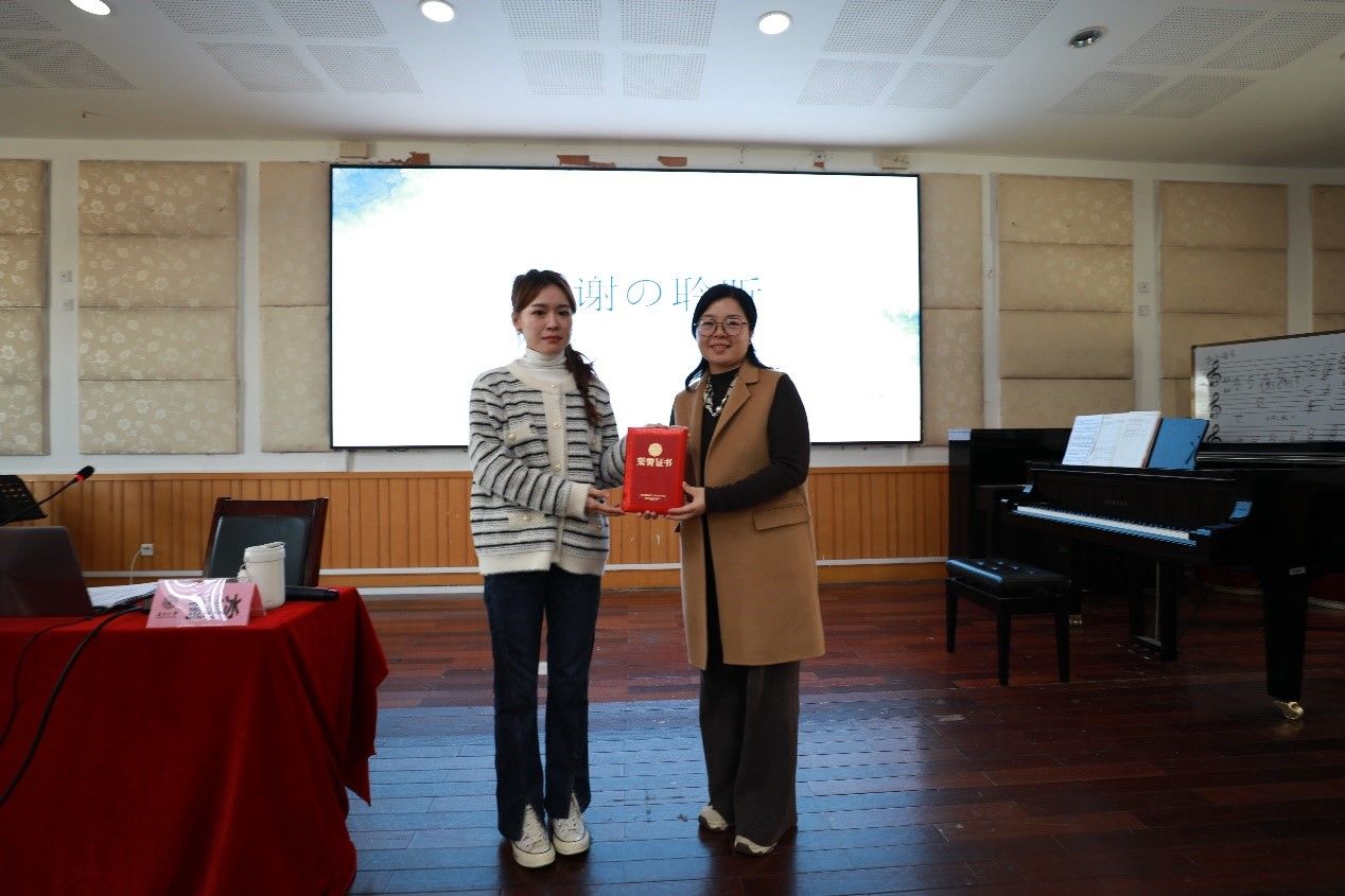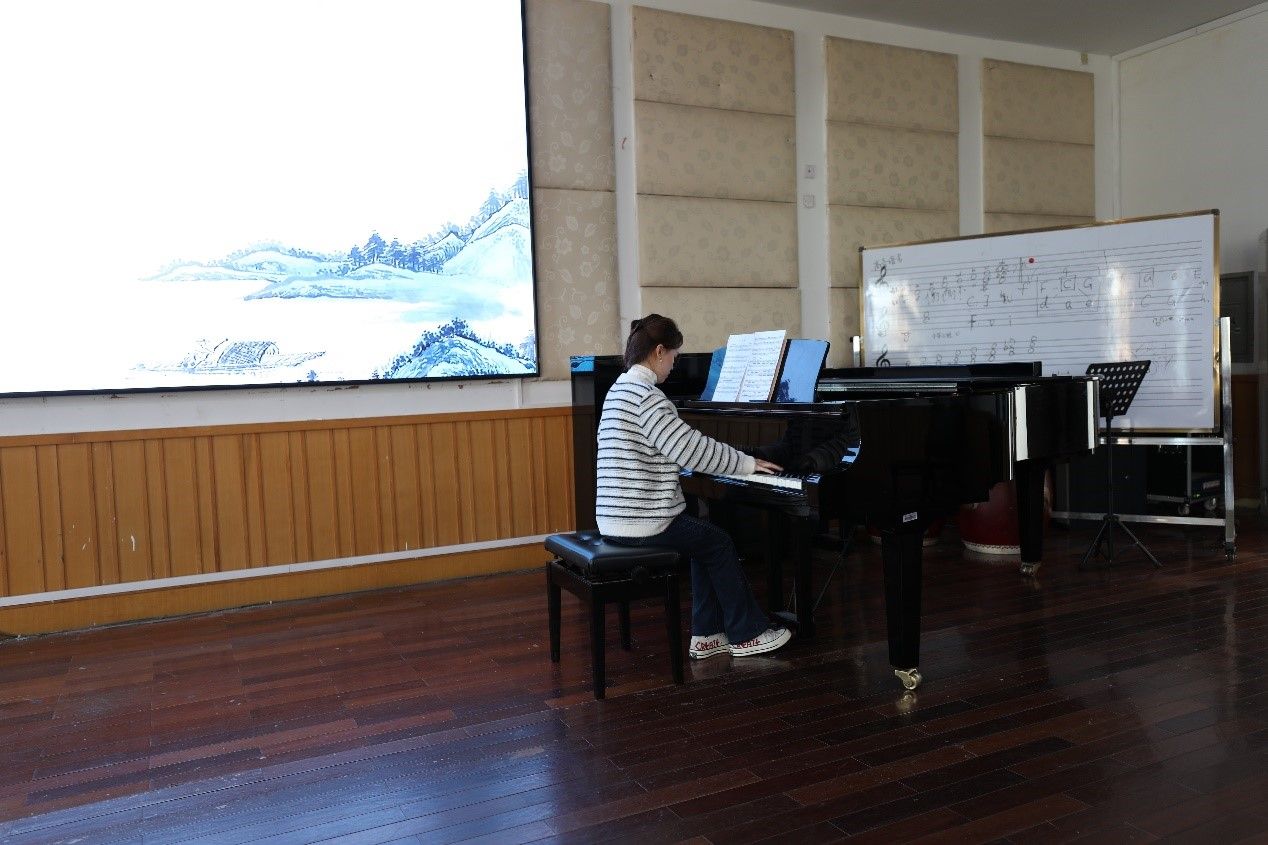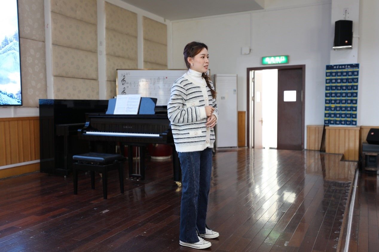 金冰冰老师给同学们分享了音乐课堂教学设计及课例,以《春江花月夜》为例,以师生互动的形式激发员工的兴趣,感受音乐的美妙。在单元设计中的课堂实践领域可以从音乐感受与欣赏、音乐表现、音乐创造等三个方面展开,教学目标主要是:围绕构建知识体系、发展音乐技能、提高核心素养。