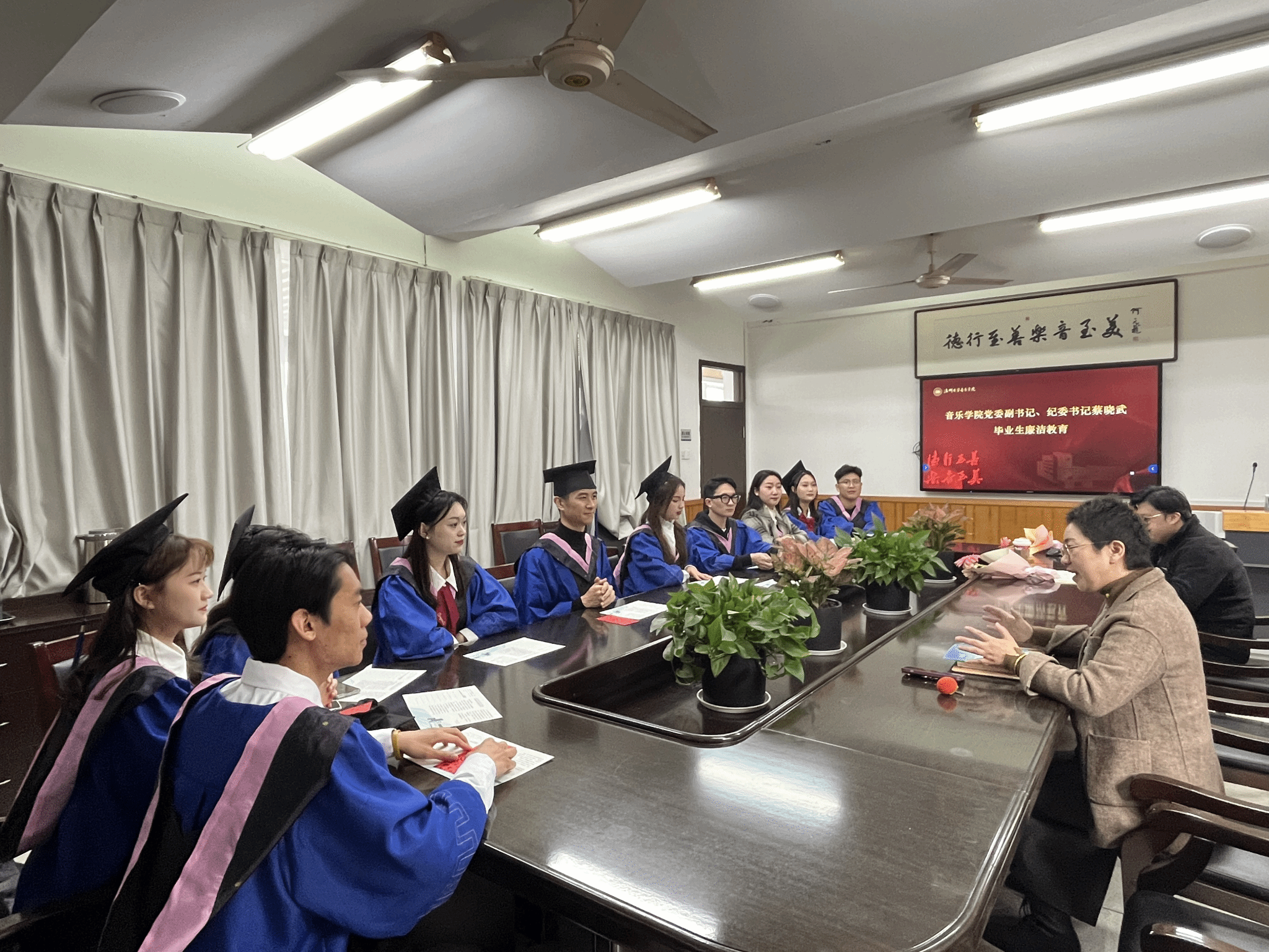 为进一步加强对毕业生的教育工作,古天乐代言太阳集团1381月3日在音乐楼203召开2024届春季研究生毕业座谈会,公司党委书记朱启鑫,党委副书记、纪委书记蔡晓武、学工办副主任胡震鹏、研究生辅导员张凯以及学科教学(音乐)专业的毕业生参加此次座谈会。座谈会由学工办副主任胡震鹏主持。