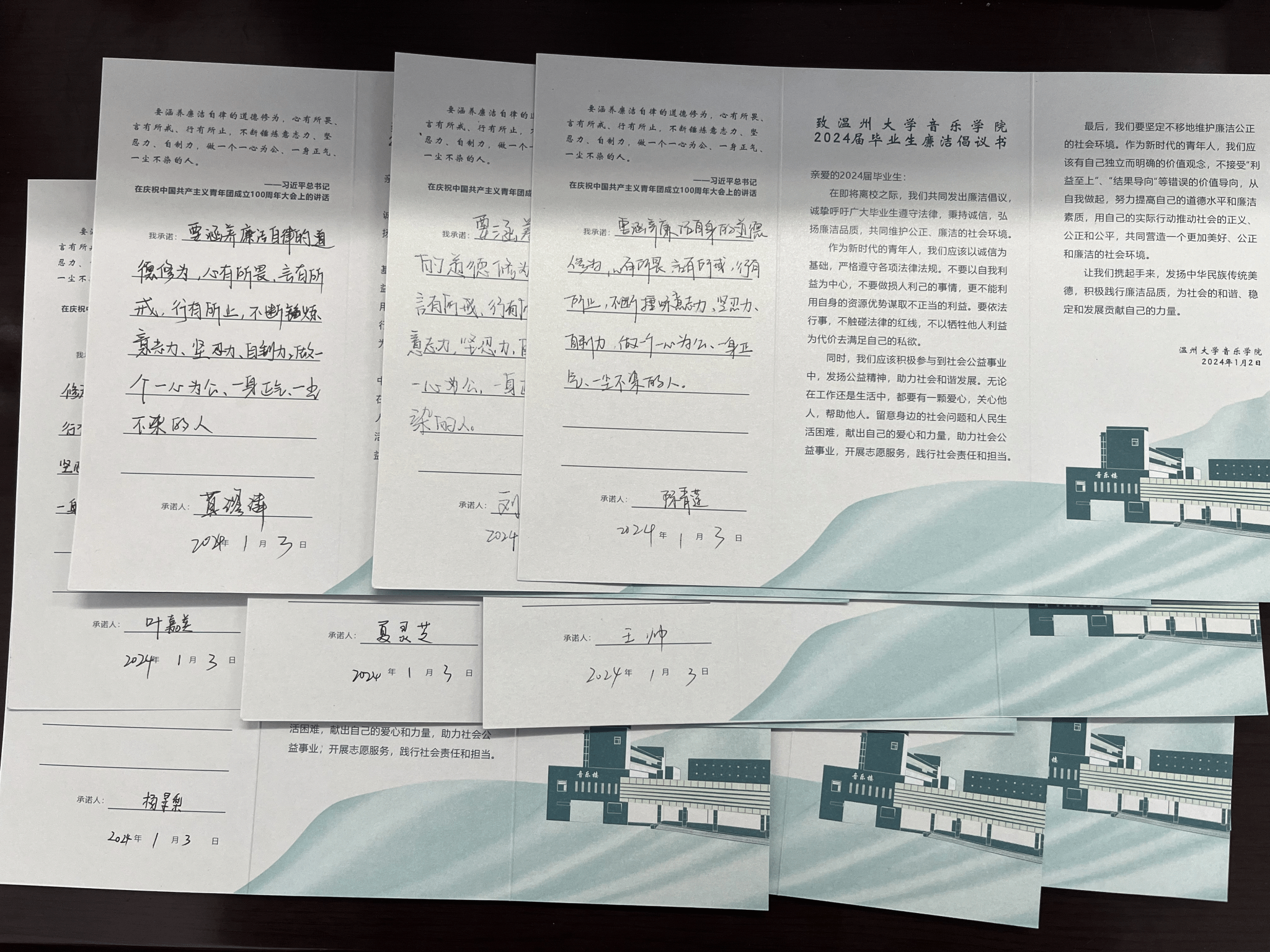 最后每位毕业生在致2024届毕业生廉洁倡议书上做出自己的承诺。