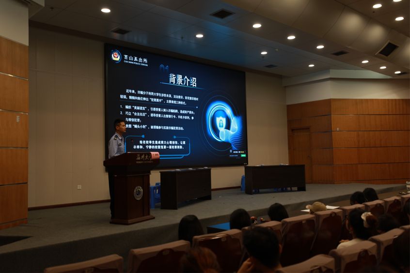 本次讲座,我们有幸邀请到了茶山派出所的史铁军警官。史警官通过讲解“什么是电信诈骗”,例举了常见的几种诈骗形式,用生动的宣讲告诉同学们如何防范电信诈骗,并希望广老员工能够时刻提高警惕,保护好自己的财产安全。
