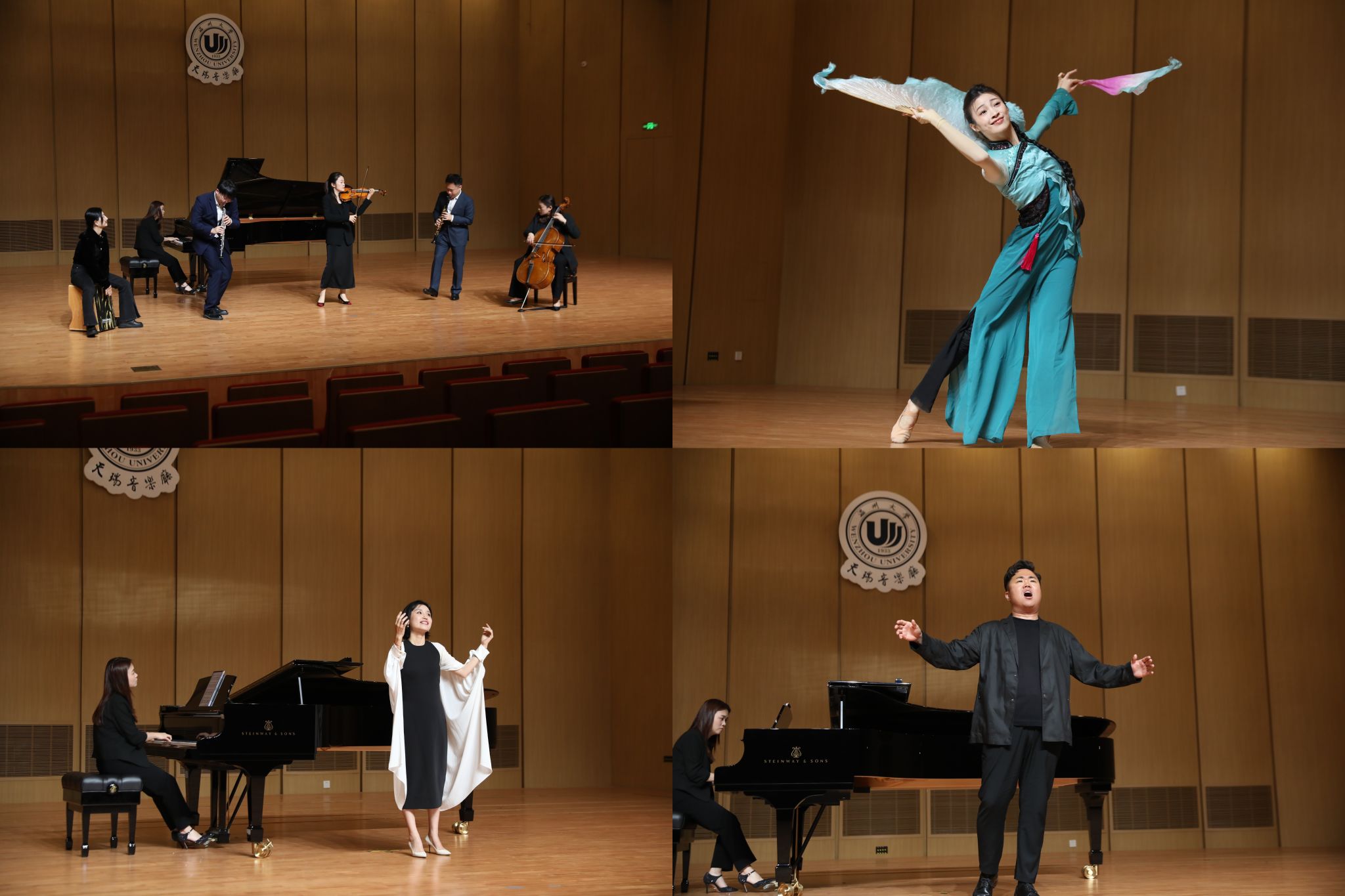 张志宏一行在公司领导、教师代表陪同下观看了专场表演,公司器乐系教师的室内乐合奏《探个够》首先开场,博得众彩,张望洋带来的舞蹈《盼》,尽显江南舞韵的婀娜,陈大帅、朱玮彬现场献唱,将氛围推向高潮。